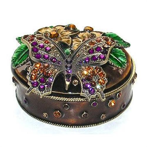 <tr><td>Title:Glass Jeweled Butterfly & Flowers Enameled Jar</td></tr>
