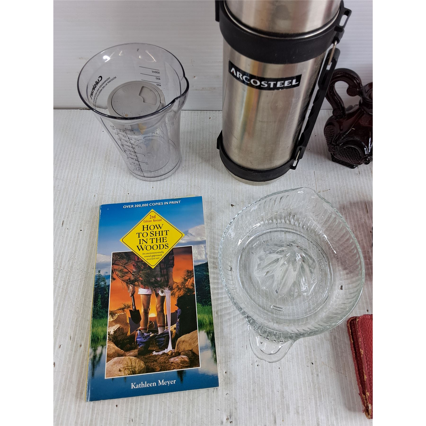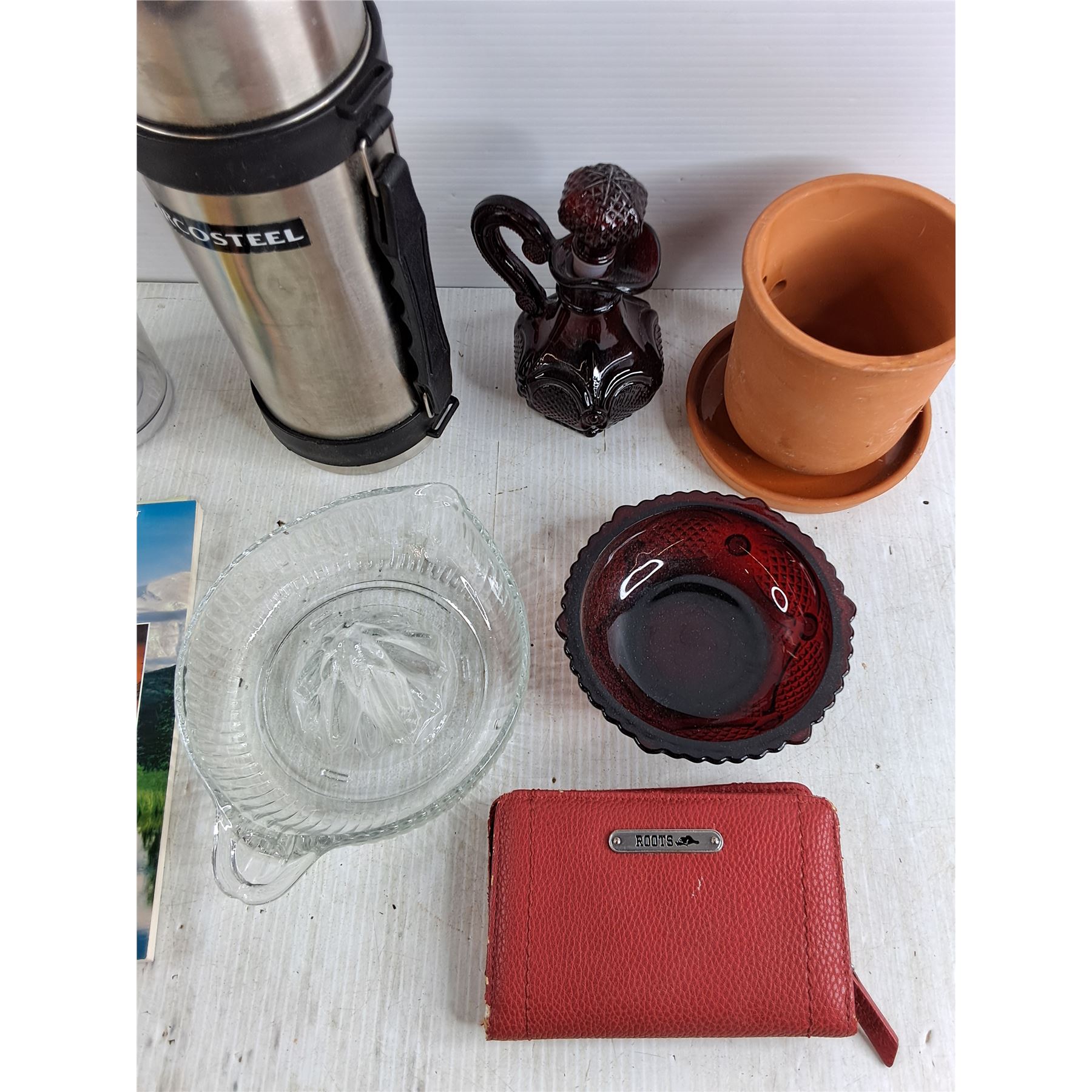 Glass Juicer, Arcostel Insulated Bottle, Planter, Avon Oil Bottle, Measuring Cups, Roots Wallet