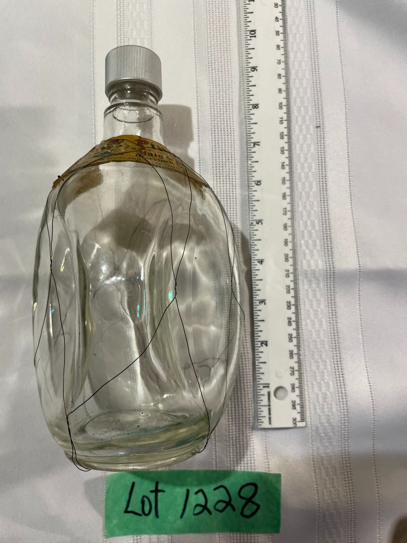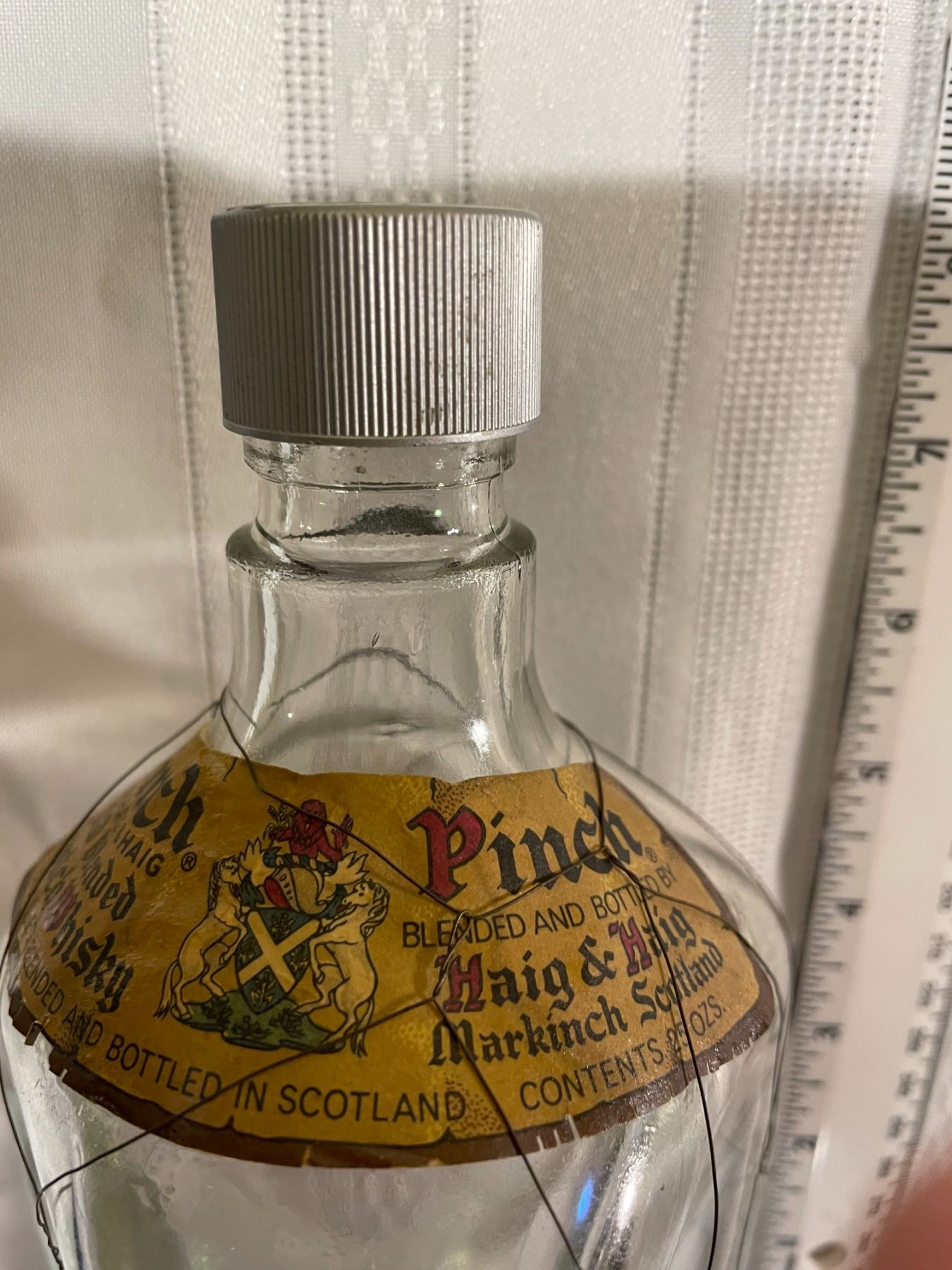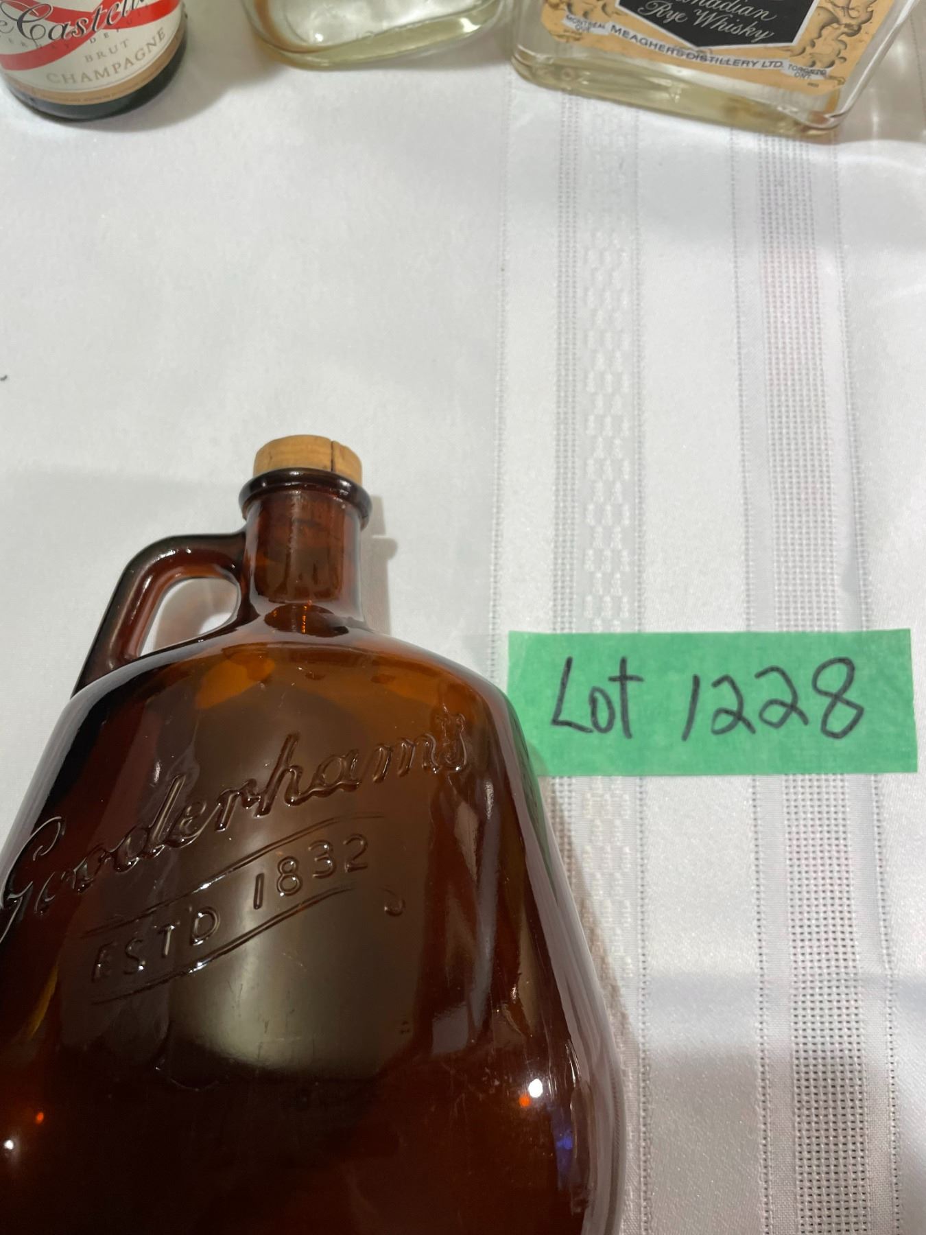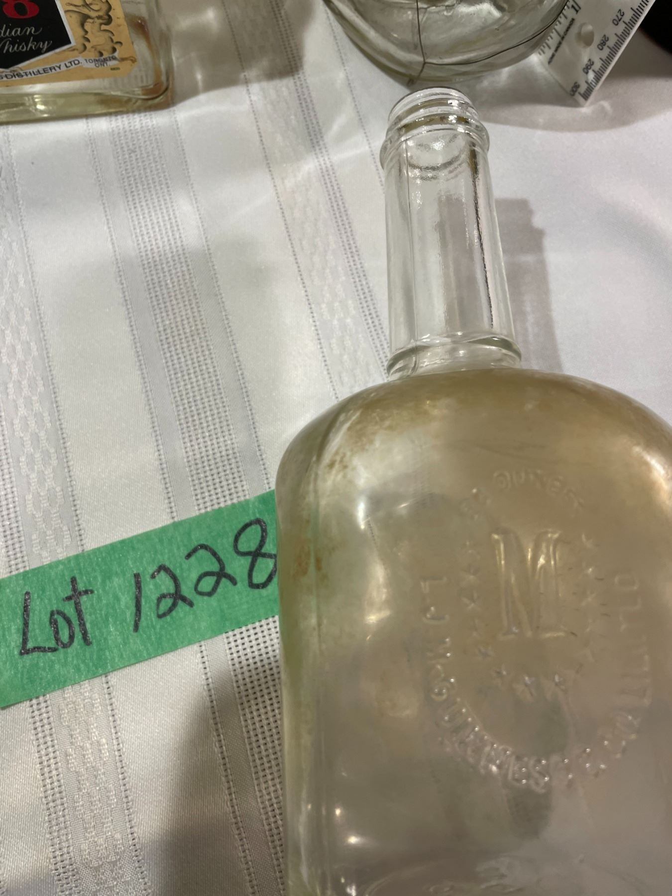 (1) Kahlua - Mexico - 1000mL (1) Gooderham's - estd 1832 - 25 oz Cork cap (1) Bottle With wire Pinch Old Blended Scotch Whiskey by Haig + Haig - Scotland (1) Square McGuiness Bottle - L.J. Mc. Guiness Co. Limited 25 oz. (1) Champagne de Castlellane 200mL (1) Meaghers 1878 Canadian Rye Whiskey Meaghers Distellery Ltd. Montreal- Toronto (1) Fine old Brandy - Product of Portugal 12 fl. oz, 341 mL- Imported + bottled in British Columbia