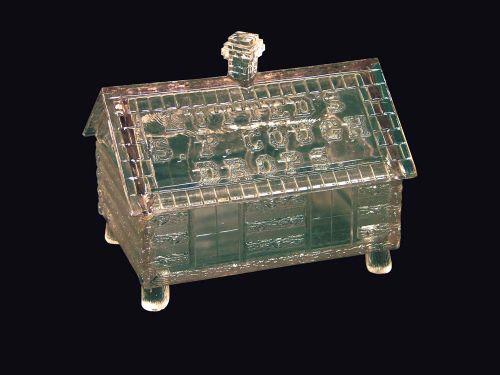Glass Log Cabin Cough Drop Dispensing Jar. Orignal not a reproduction, excellent condition. 58 X 5 1/2 X 5 1/2 inches.