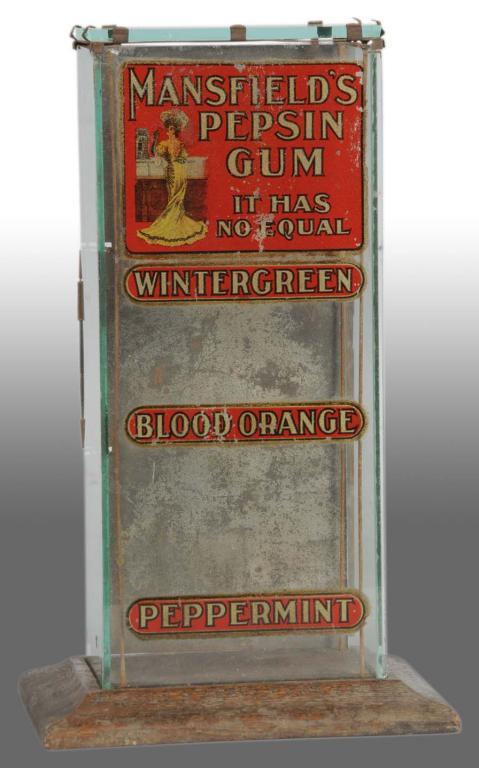 Description Rare. Appears to be all original. Depicts Victorian woman at counter with a machine. Some repairs are needed and shelves are loose but glass is intact. Condition (Good - Very Good). Size 11 - 1/2" T.