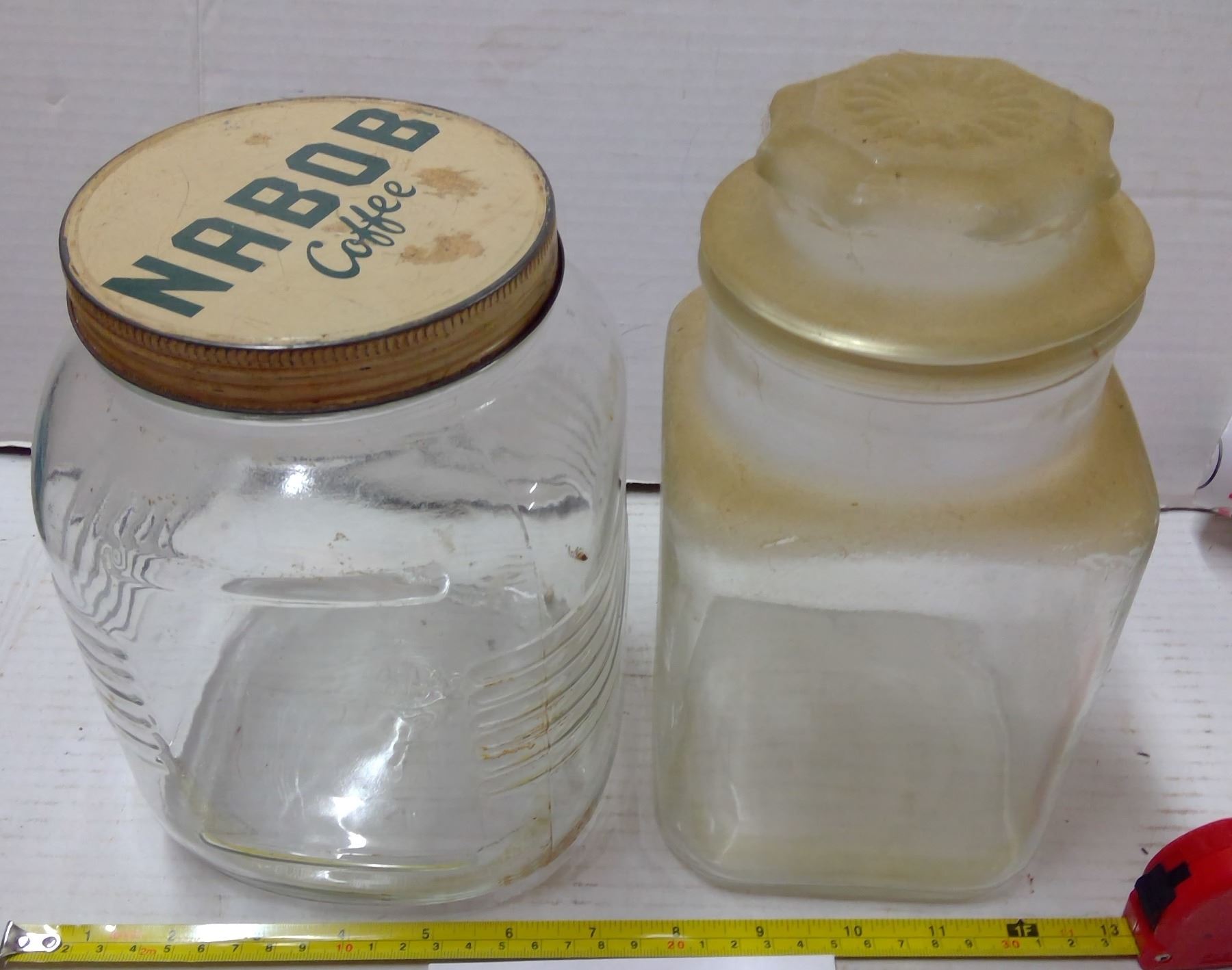 Glass Nabob Coffee Jar, and rectangular glass jar