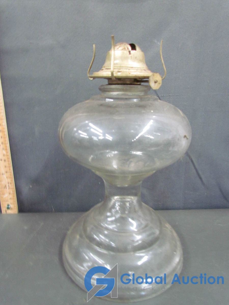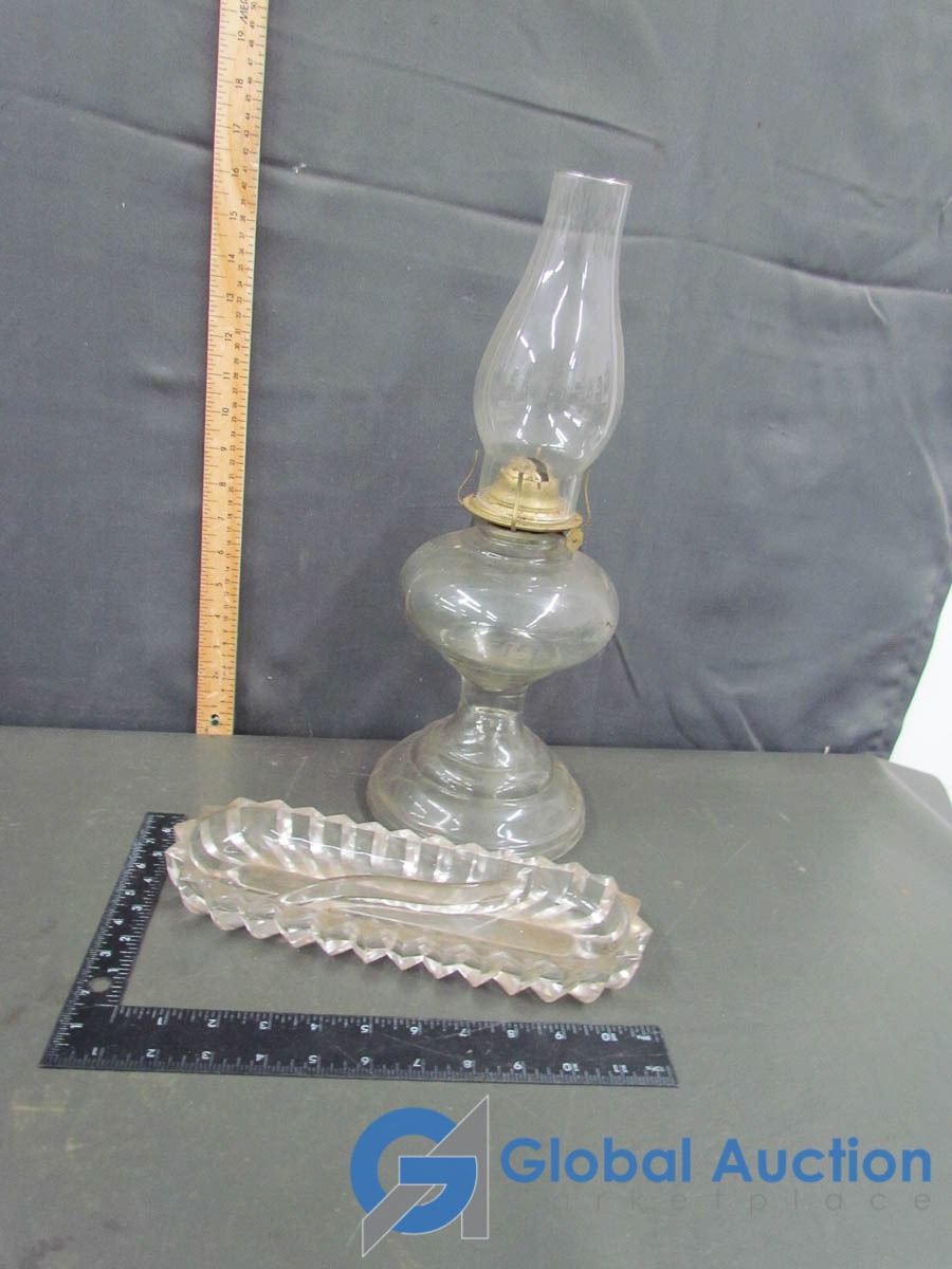 Glass Oil Lamp with Shade and Dish