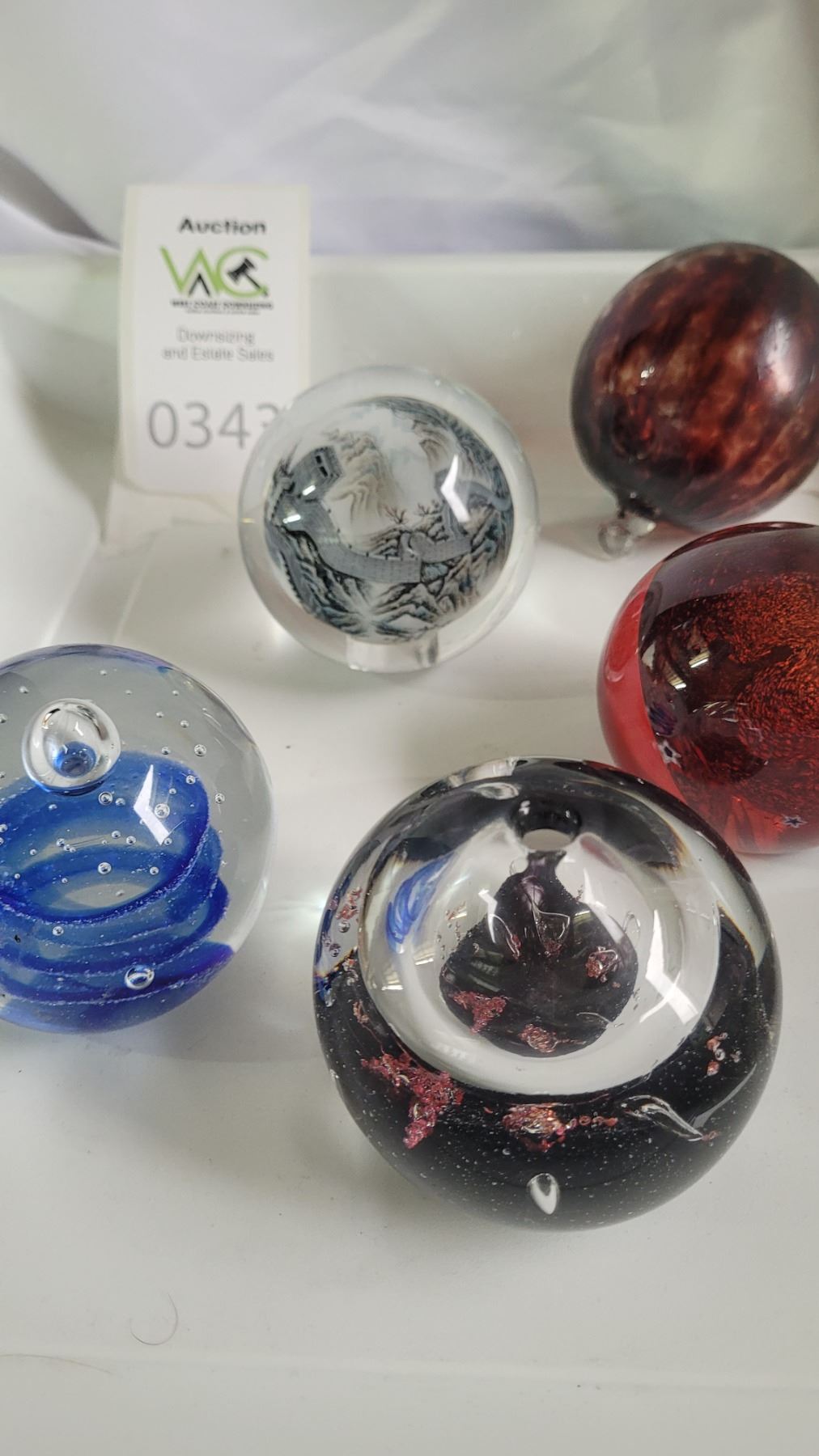 Assortment of glass paperweights. Pickup at 9 am