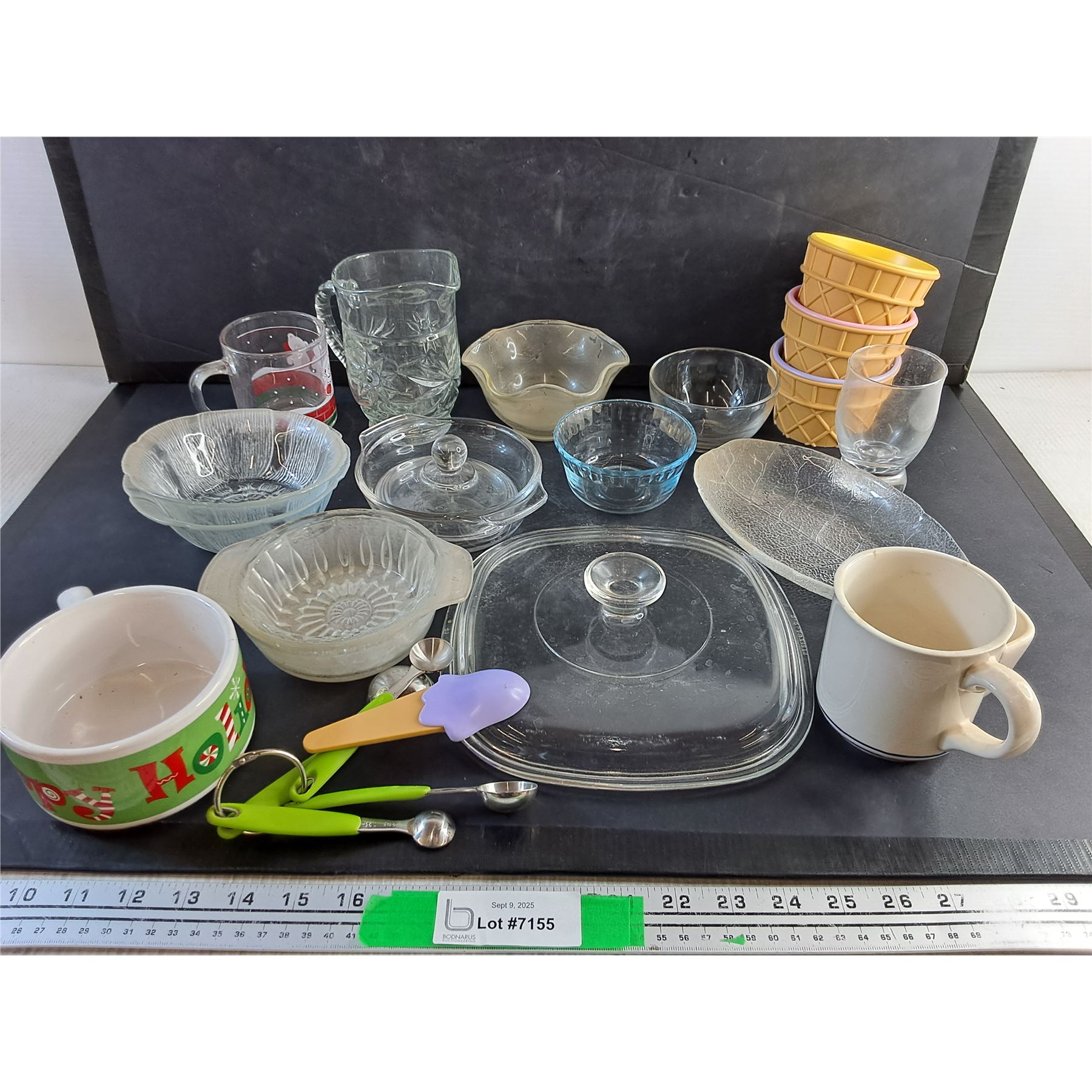 Glass Pitcher, Ice Cream Cups, Glass Bowls, Measuring Spoons, Lid, Ceramic Mug - PICK UP
