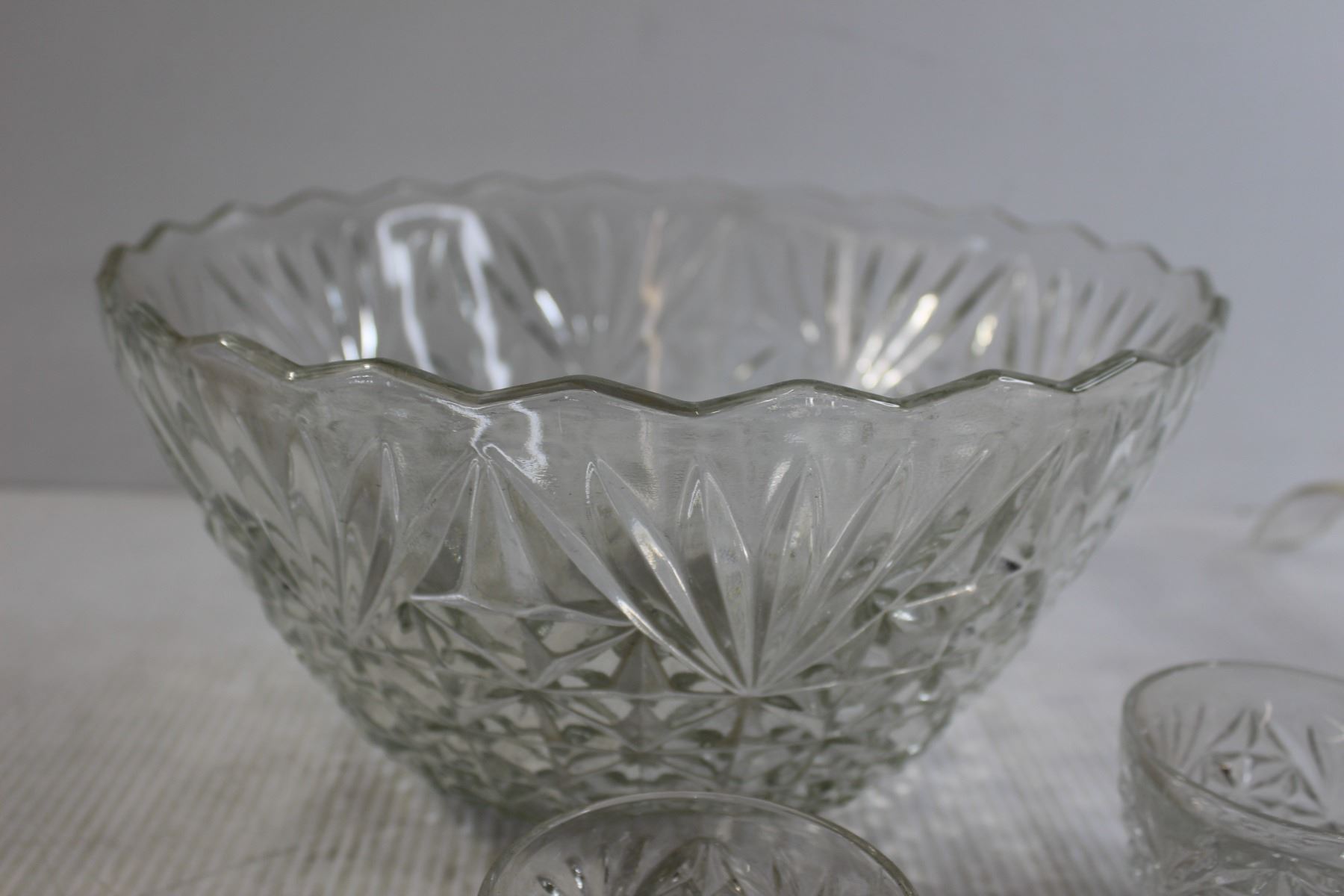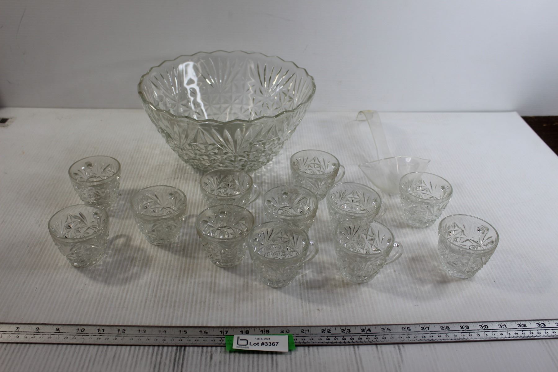 Glass Punch Bowl with Ladle and (12) Glass Cups
