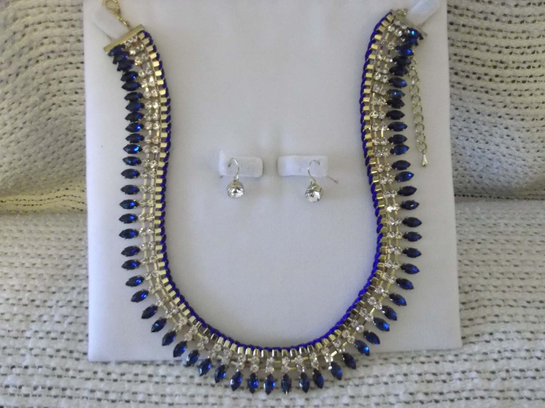 Glass Sapphire & Rhinestone Necklace Set