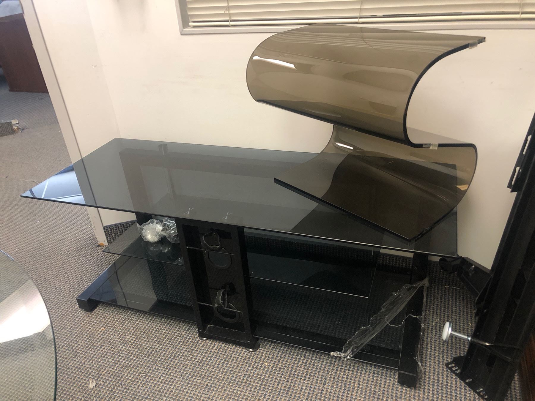 Glass TV table/stand w/ decorative glass piece (TV table approx 52"x20"x20")