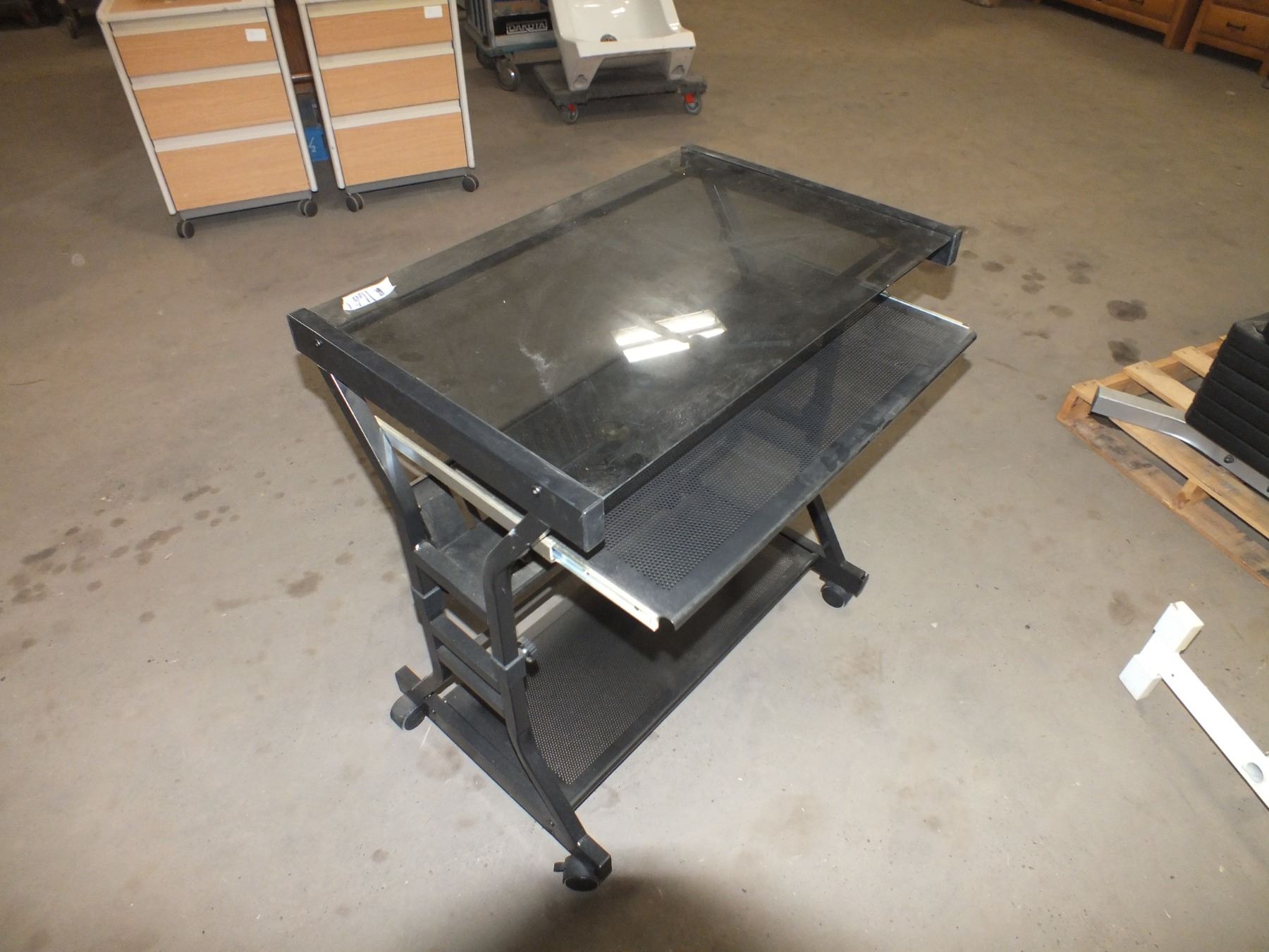 Glass Top Computer desk on Wheels, 31"l 20"w 32"h...used