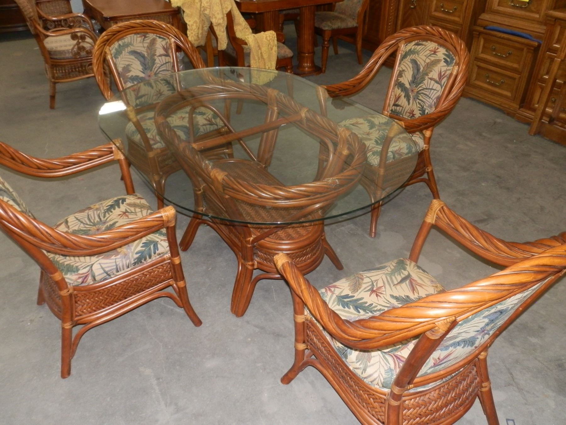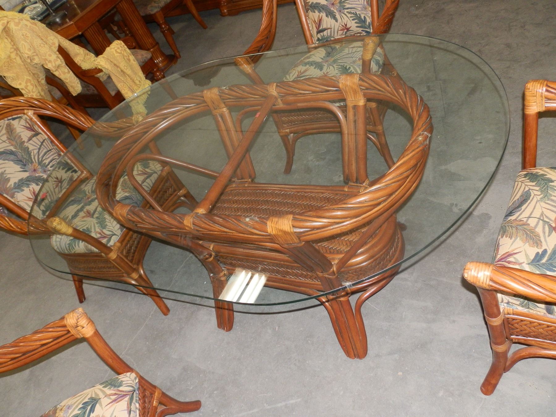Glass Top Wicker Table & 4 chairs in very good condition...used