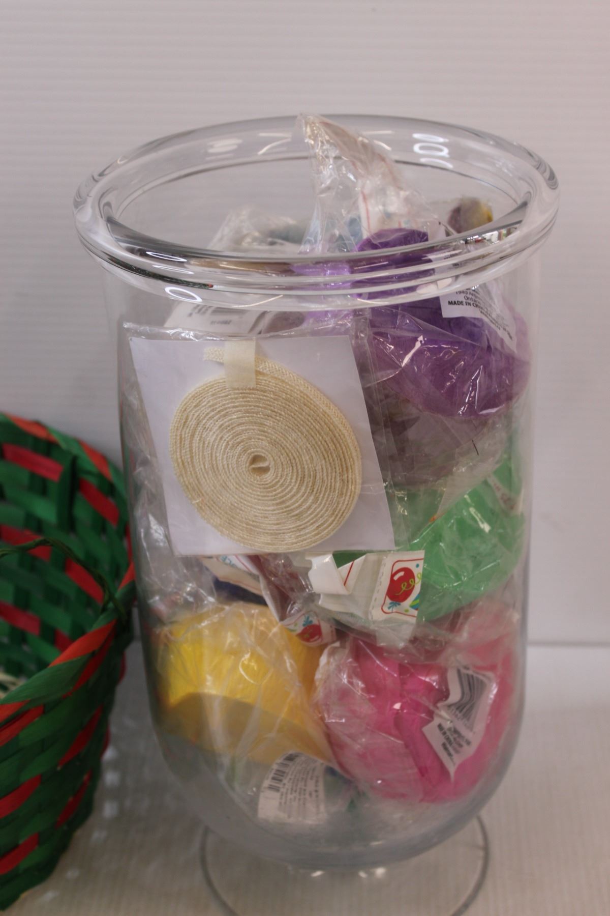 Glass Vase Decor w/Party Streamers & Misc., Wicker Basket