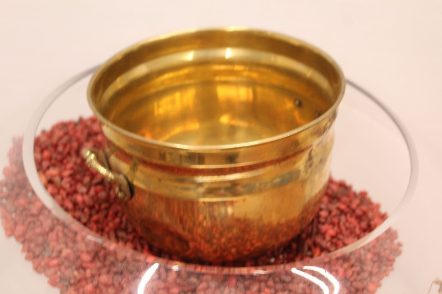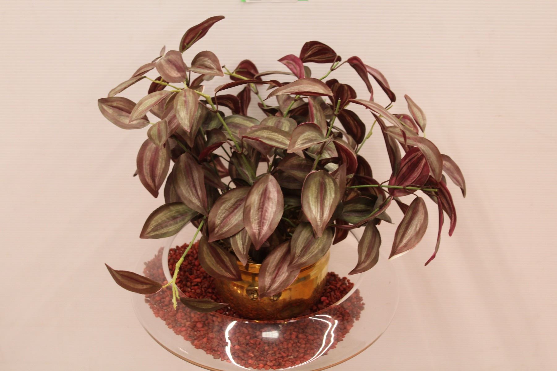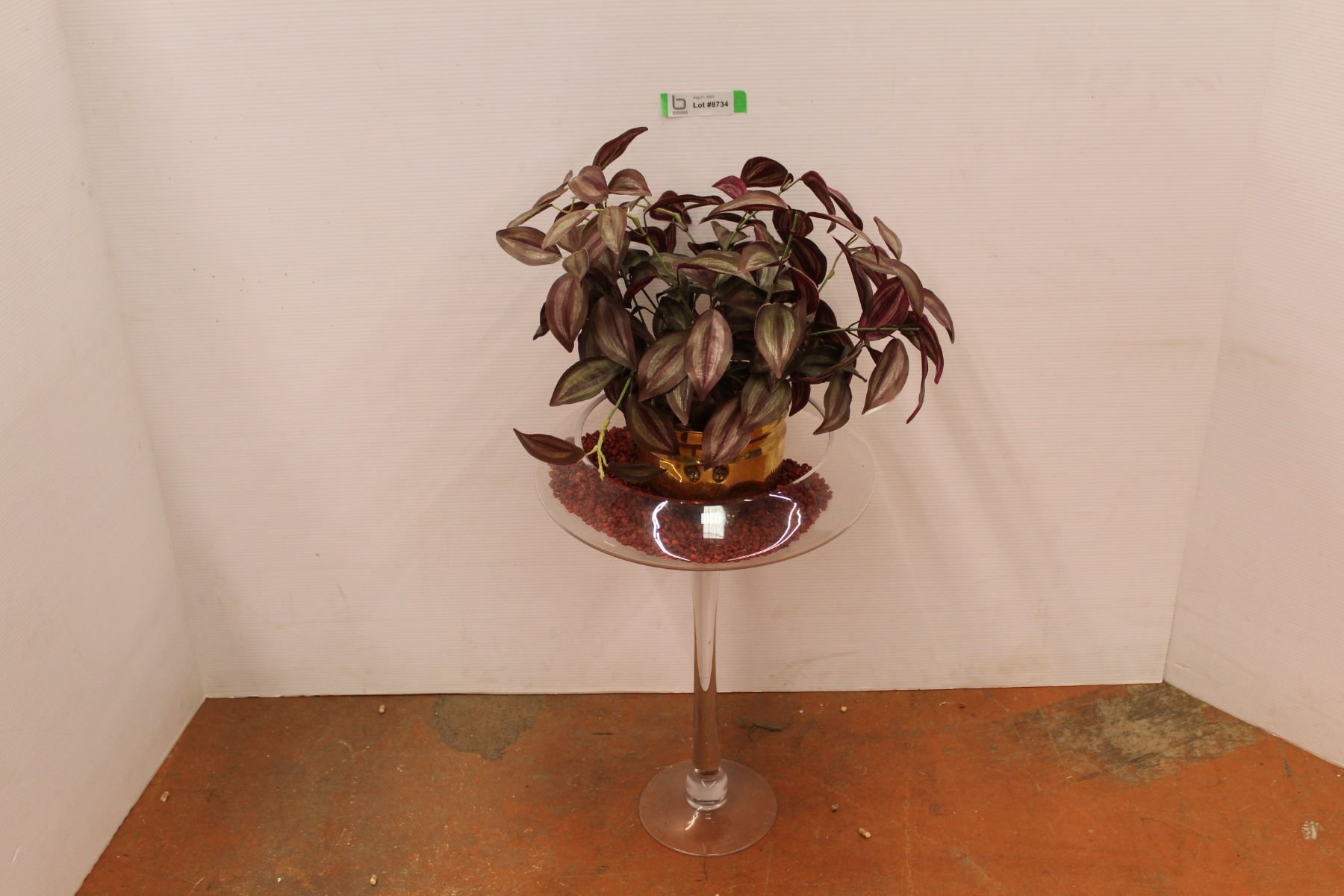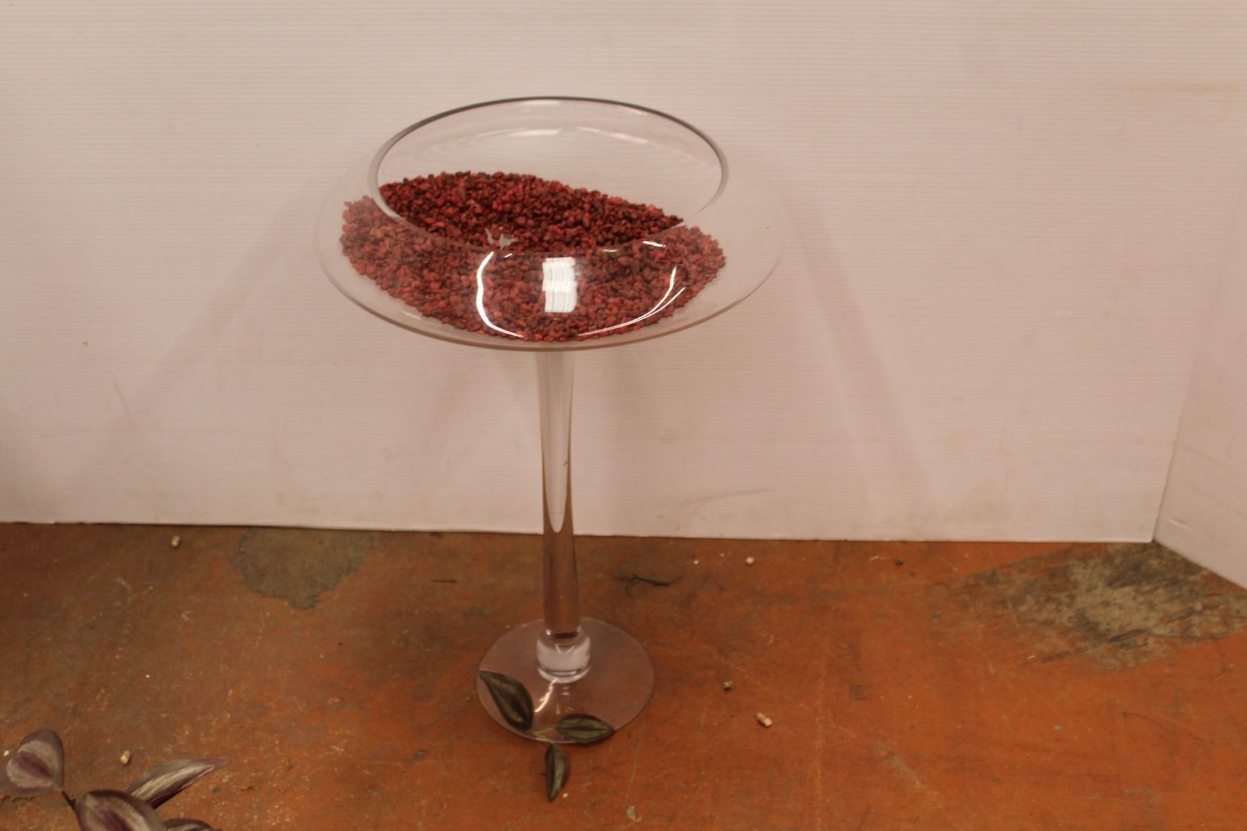 *Glass Vase/Stand w/Rocks & Fake Plant (20"h x 13"w)