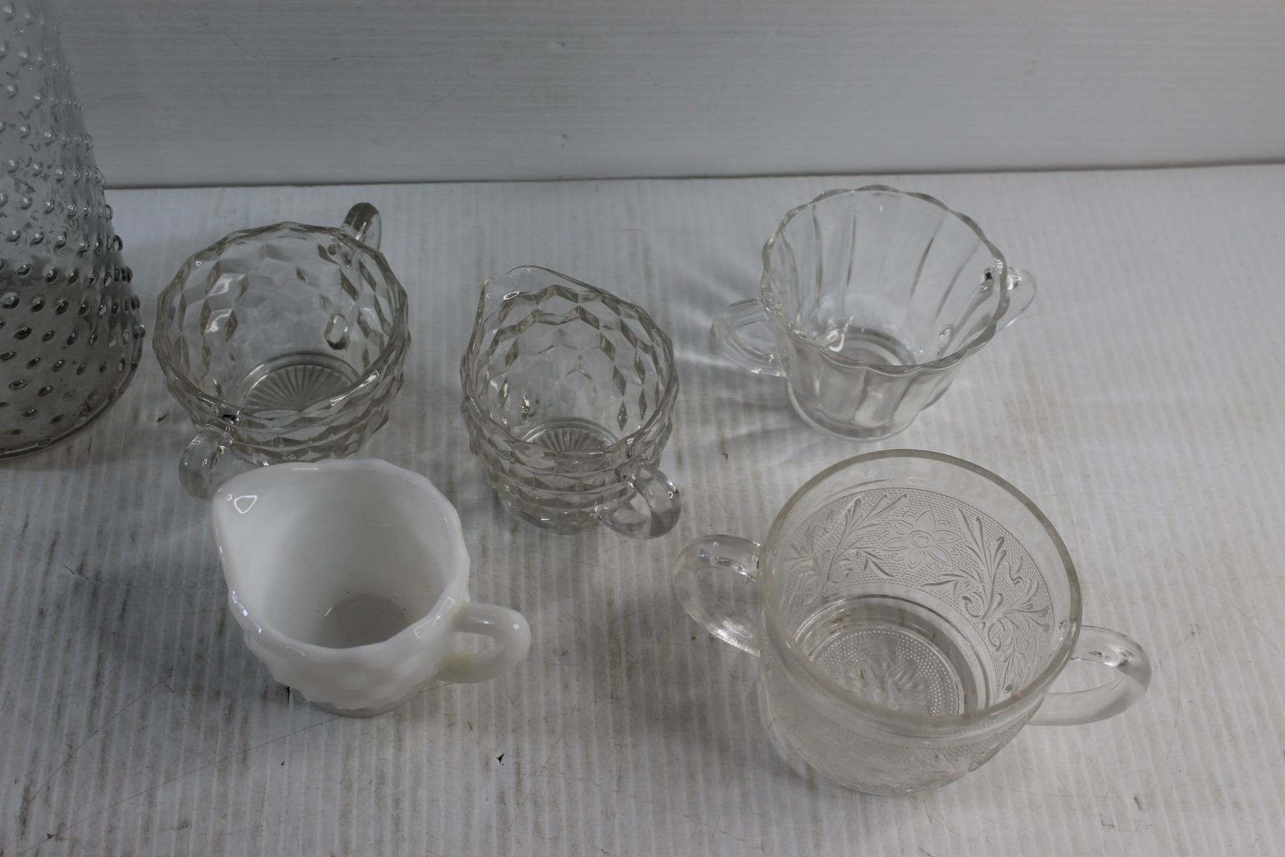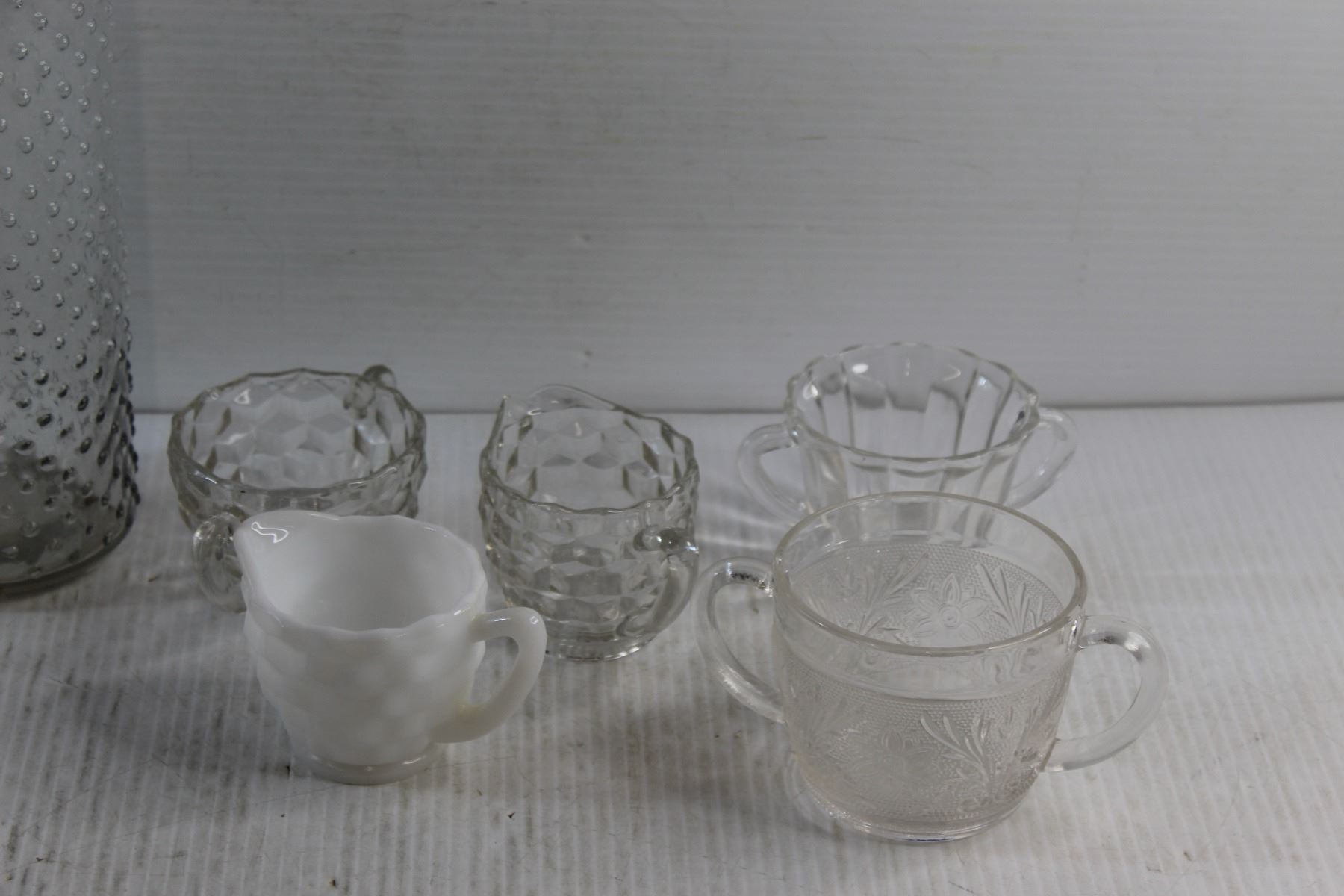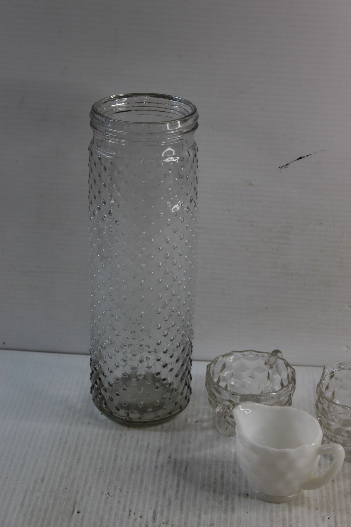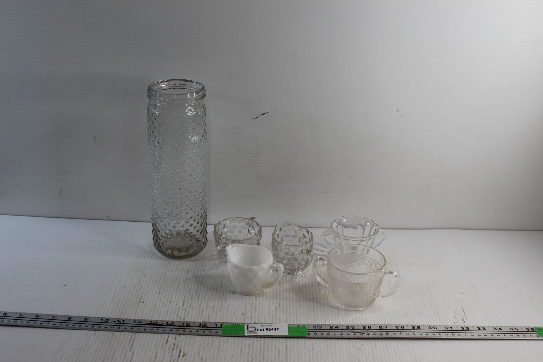 Glass Vase. Tea Cups and Cream & Sugar Set