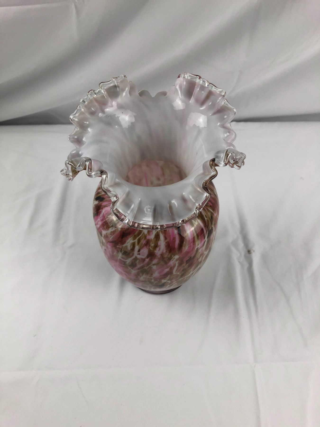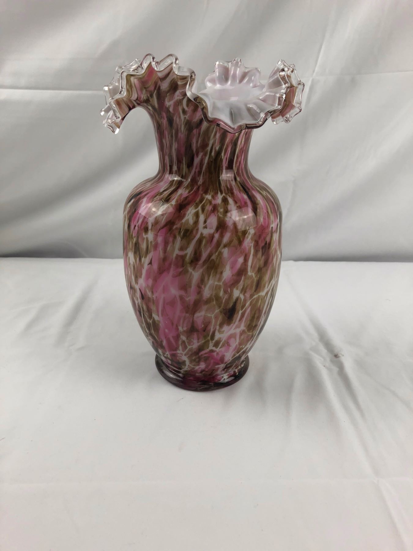 Pink & Green Glass Vase. Dimensions 10.5" height x 6" wide