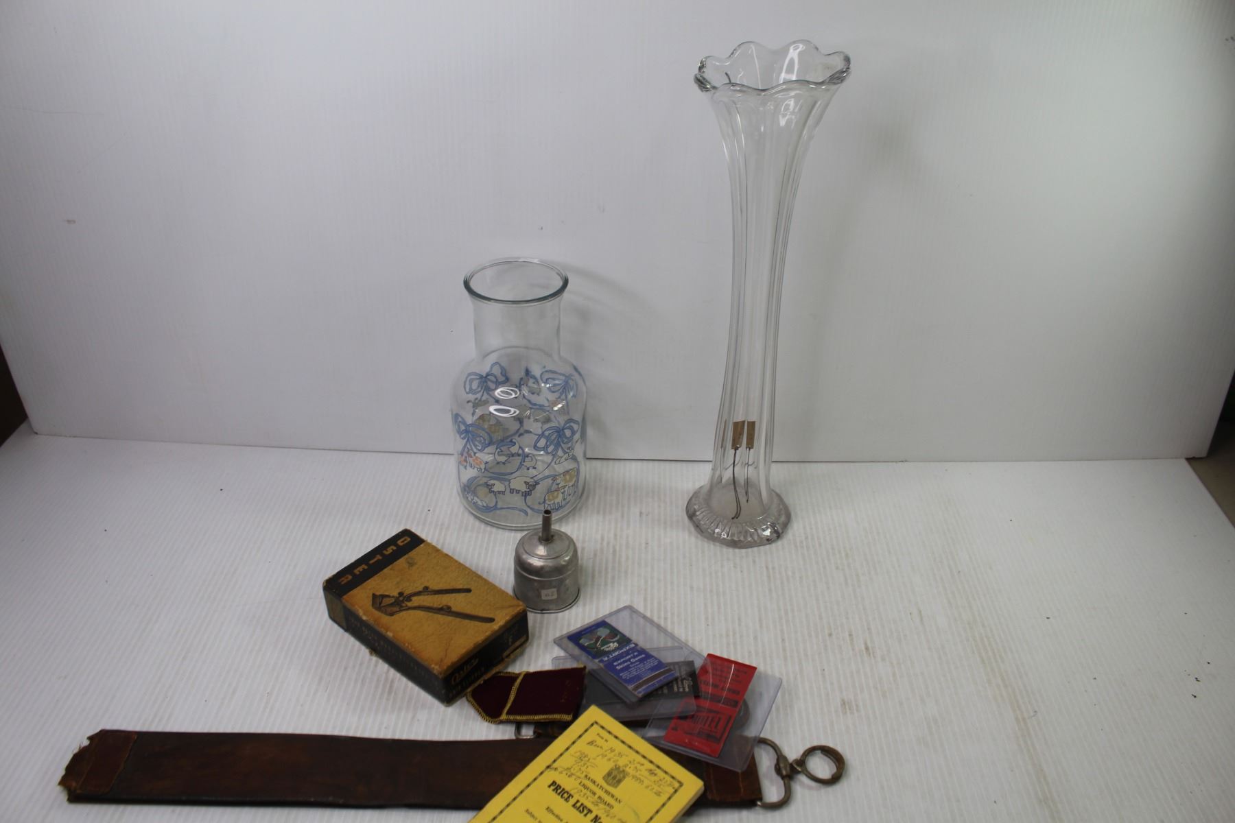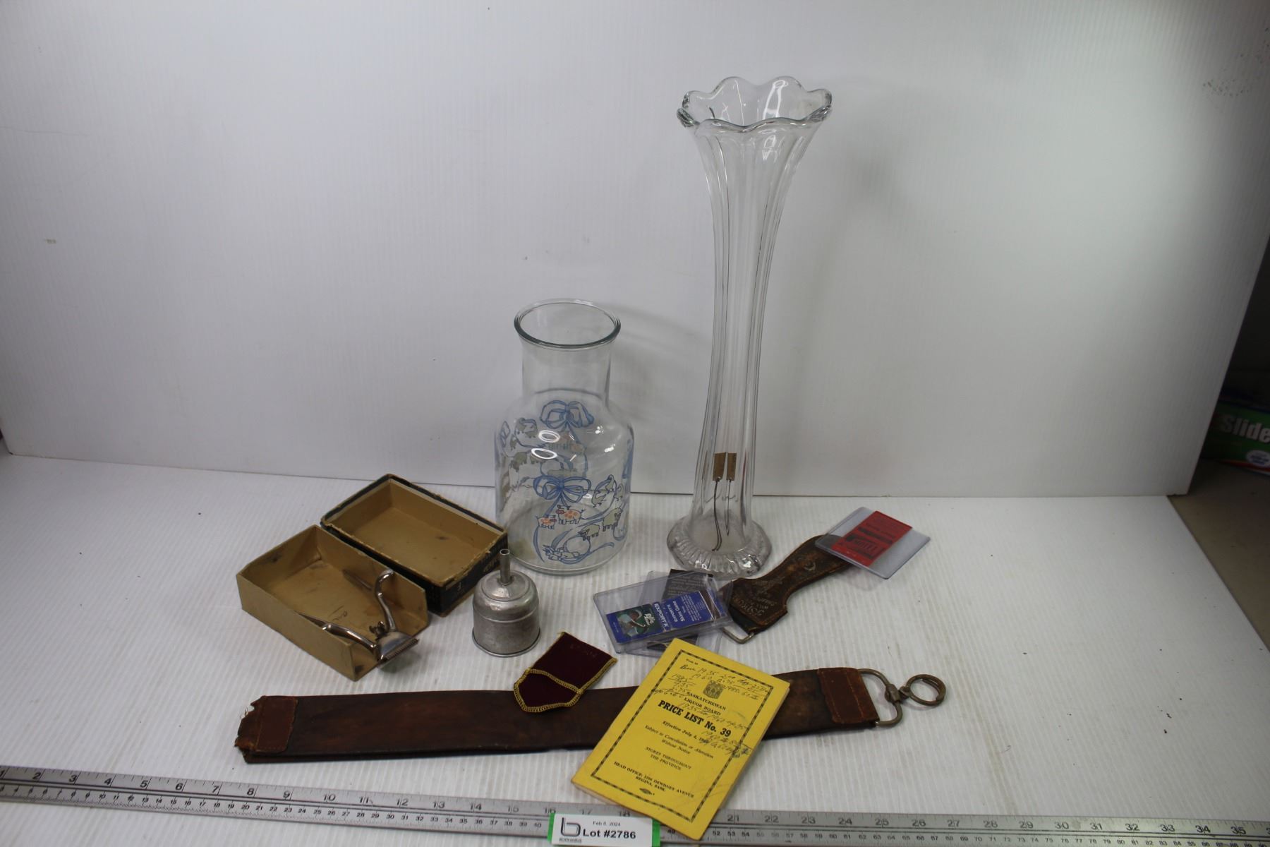 Glass Vases, Leather Strop, Funnel, Hand Clippers, etc.