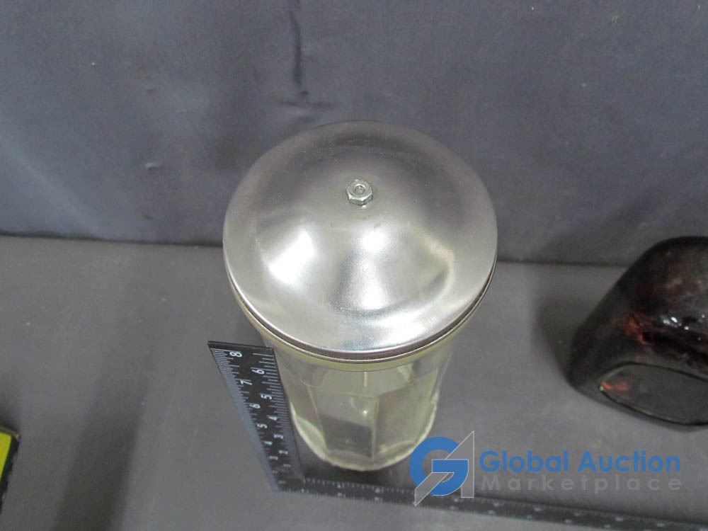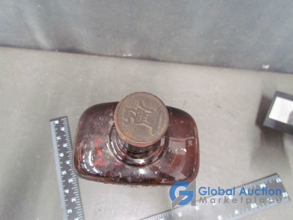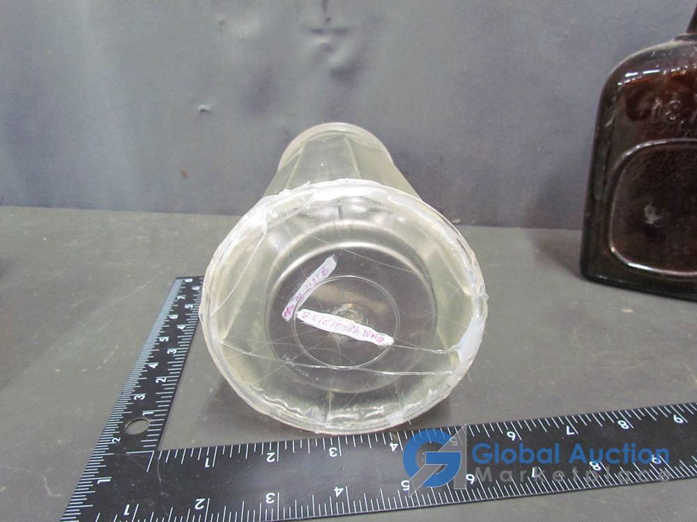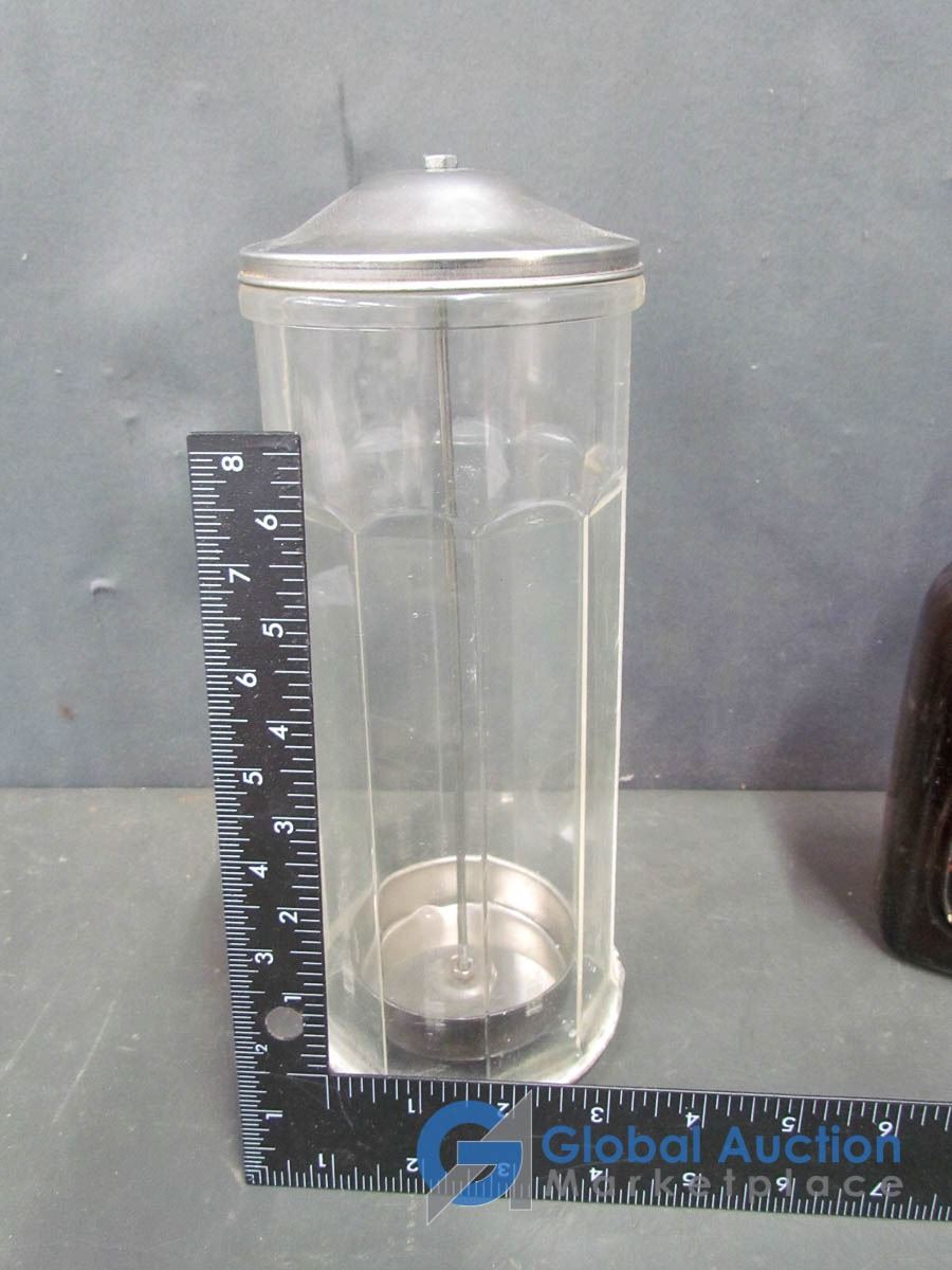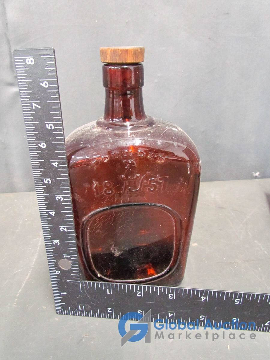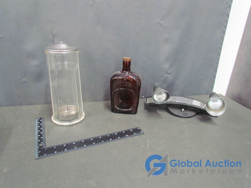 Glass Whiskey Bottle, Plastic Barbers Comb Storage and Light Fixture