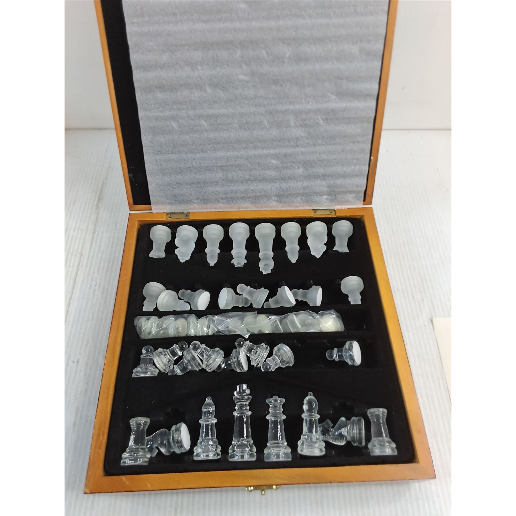 Glass & Wood Chess & Checkers Set - 1 Foot Needs Glue