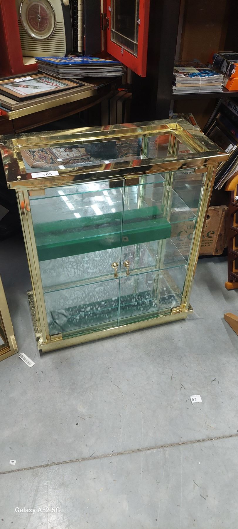 Glass and Brass Display Cabinet, no top glass 12"x 24"x 28"