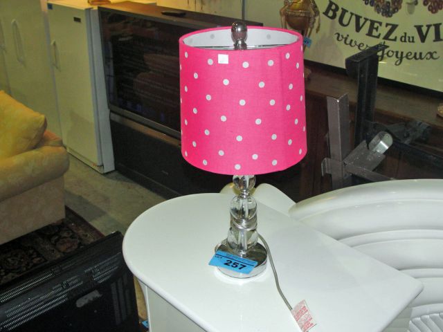 Glass based pink with white polka dot bedroom lamp