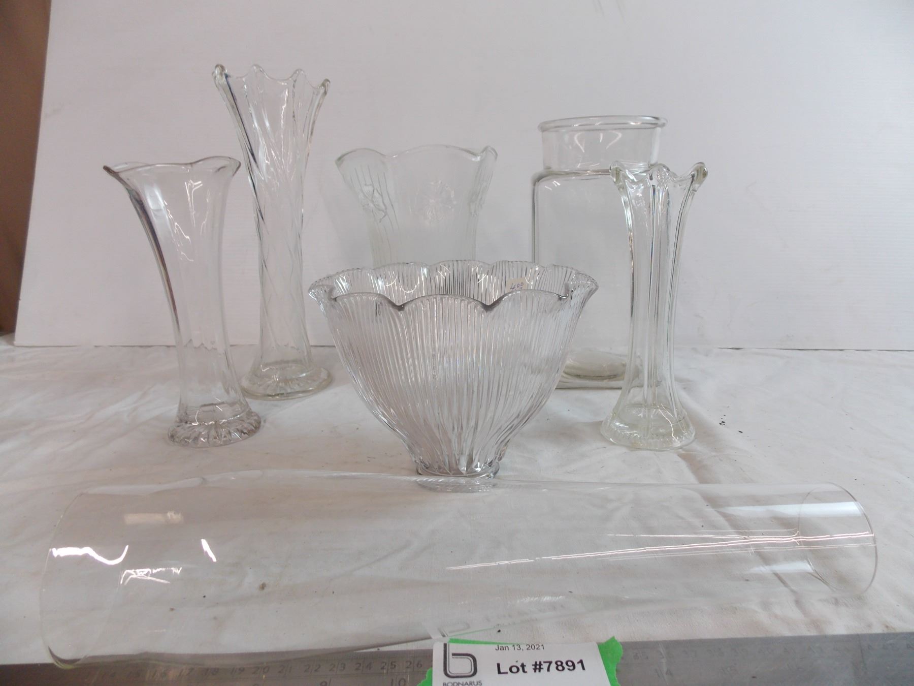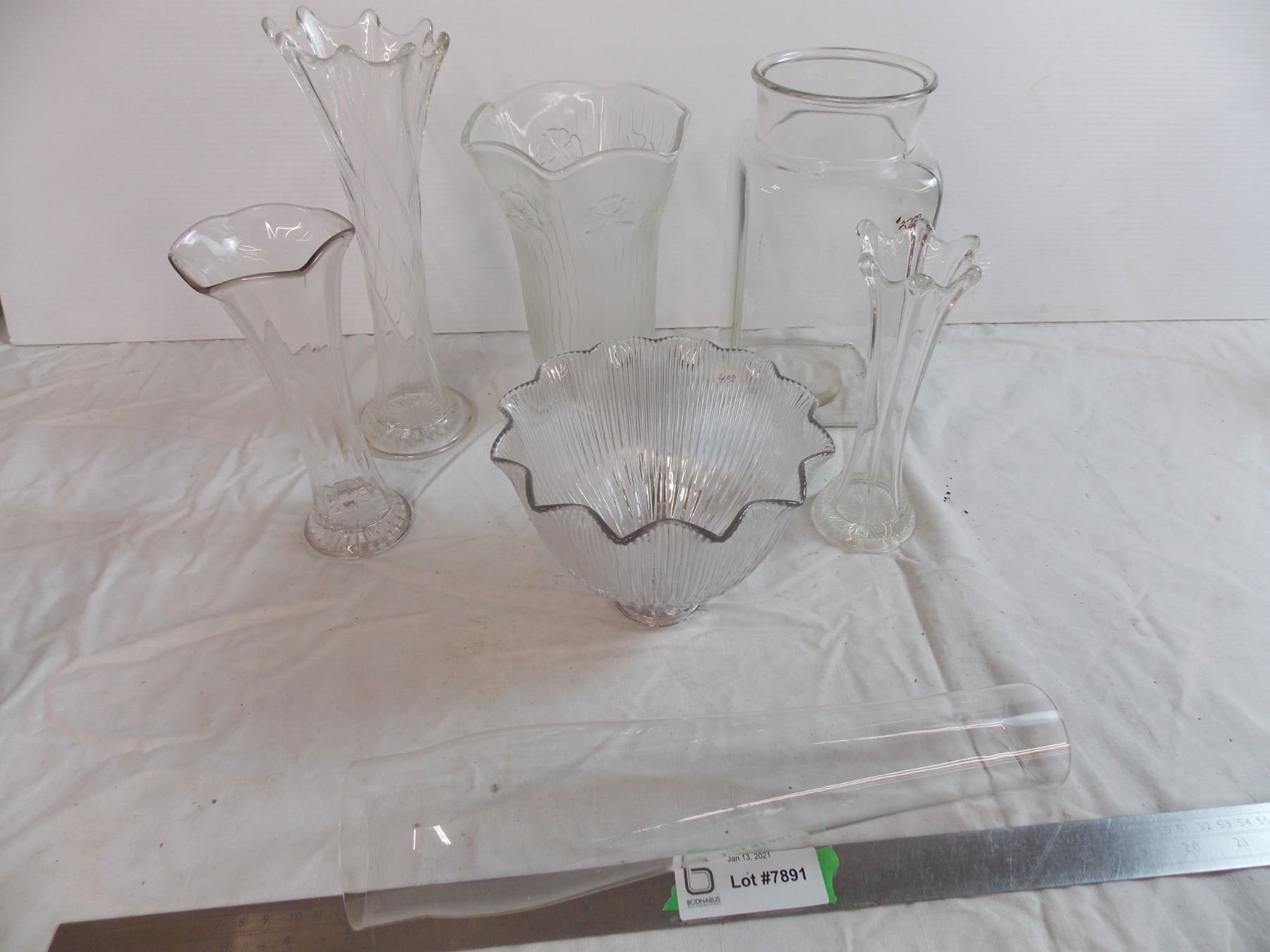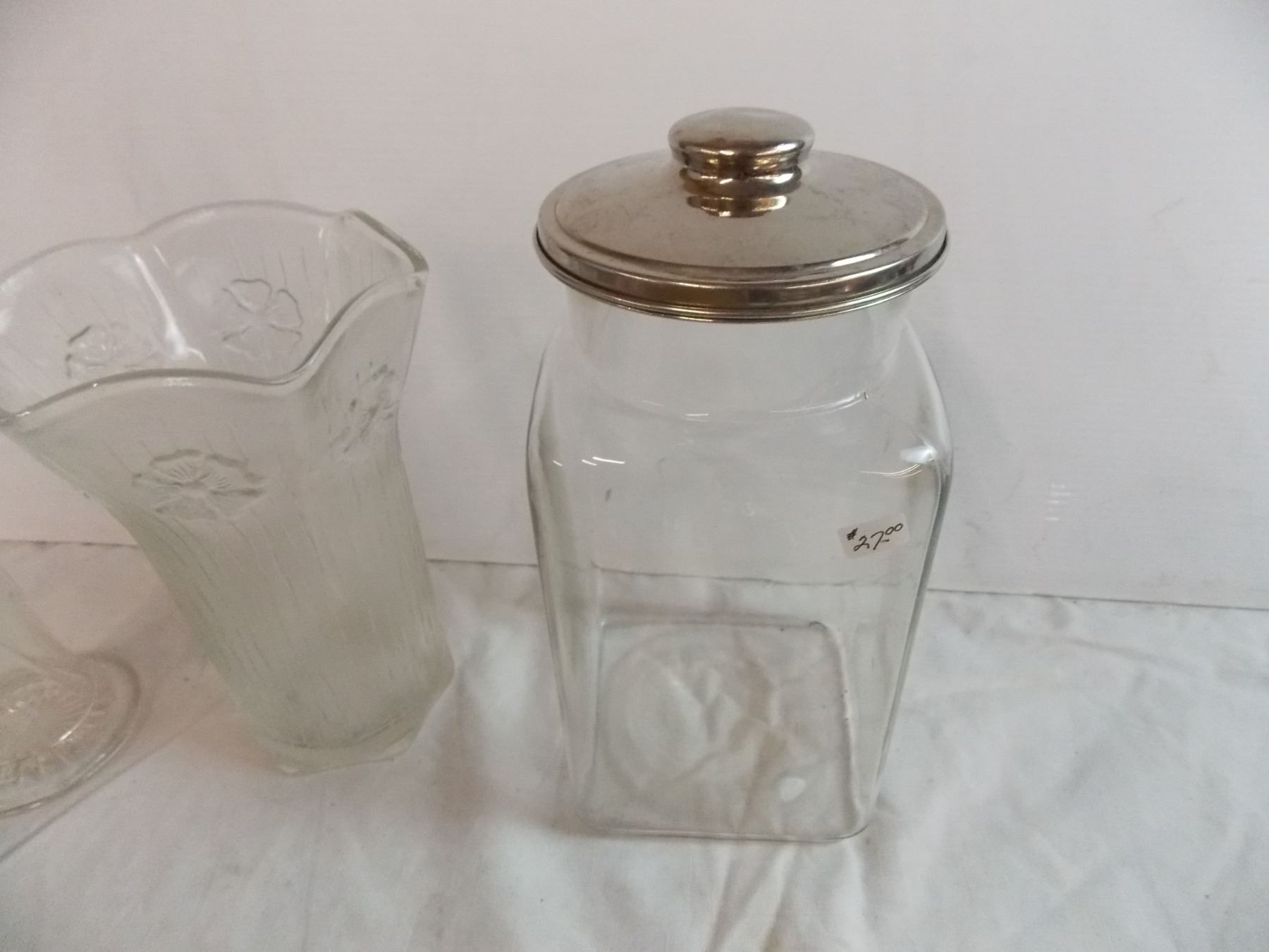Glass cookie jar (with lid) + Glass Vases + long lamp shade