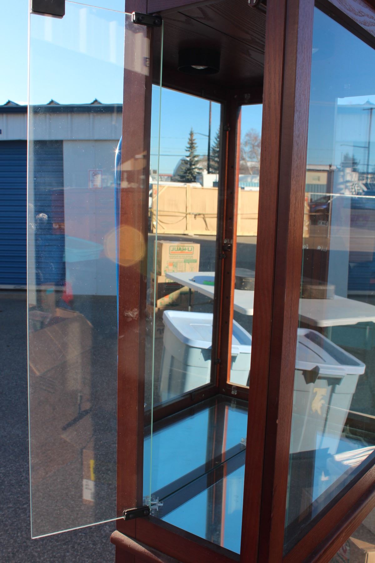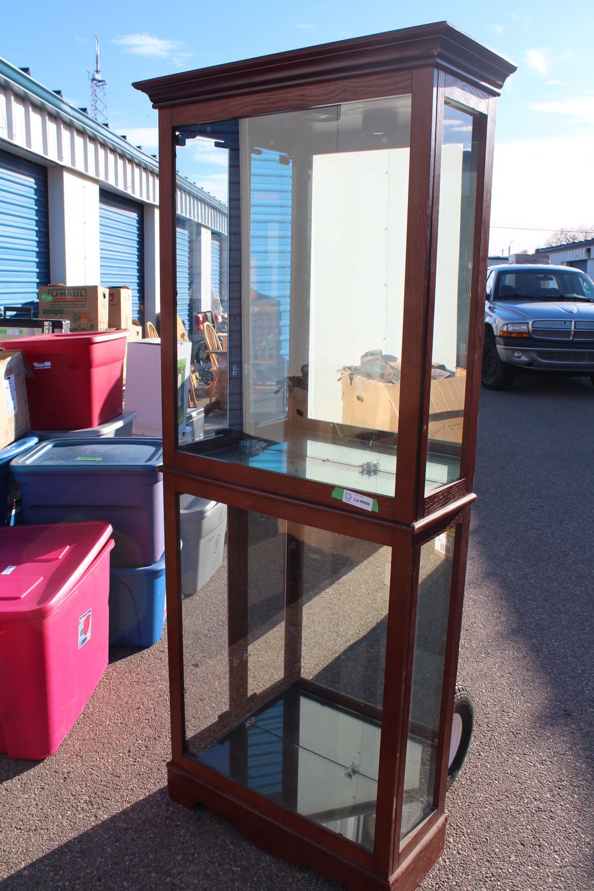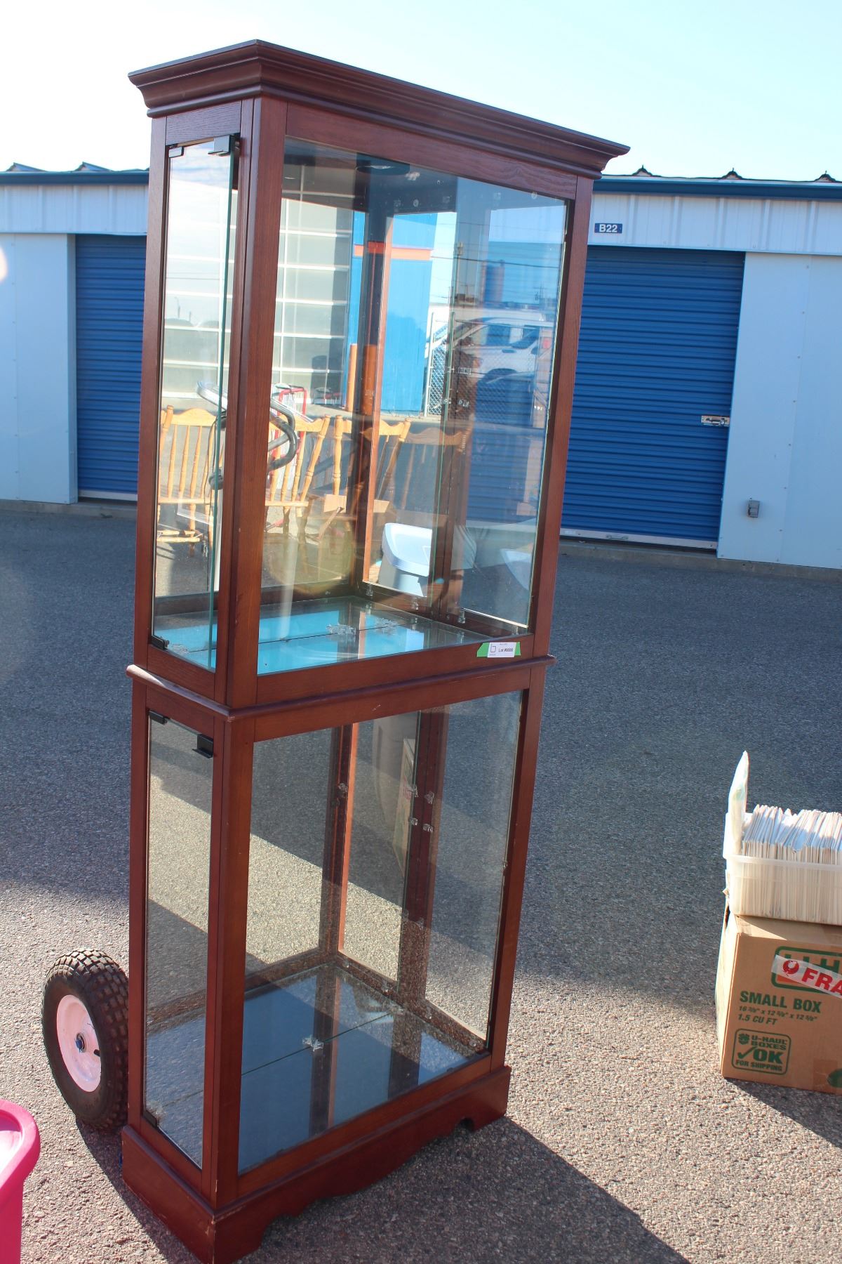 Glass display Cabinet with mirrors - approx 6ft tall + 26-28" wide (opens from the side)