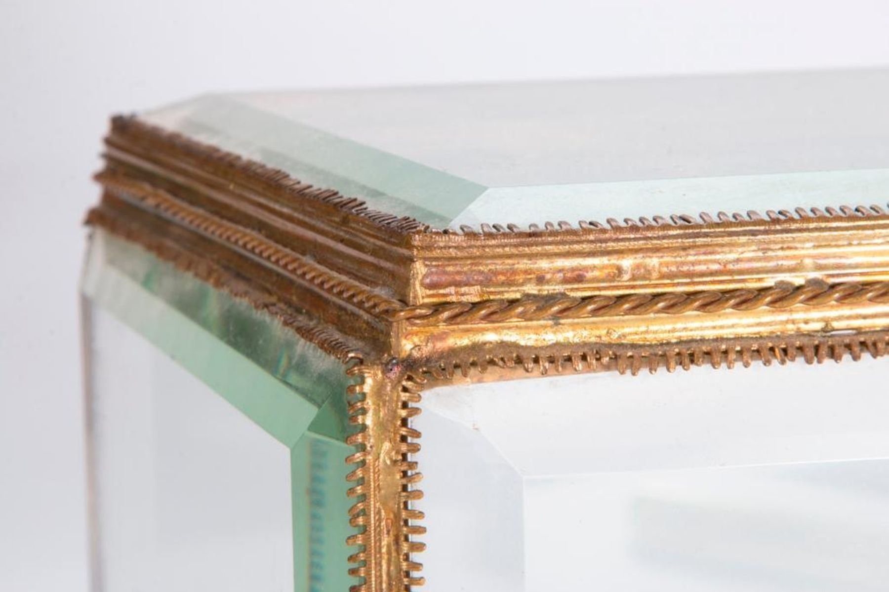 A beveled glass display case. H- 9 1/2 " W- 12" W- 8 1/2". Condition: Good.
