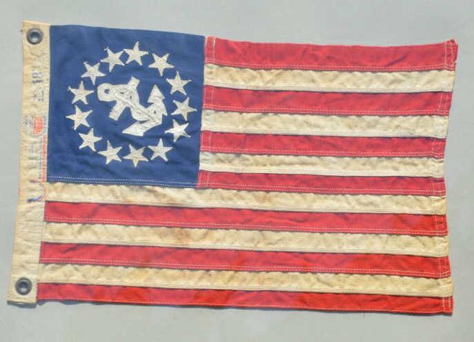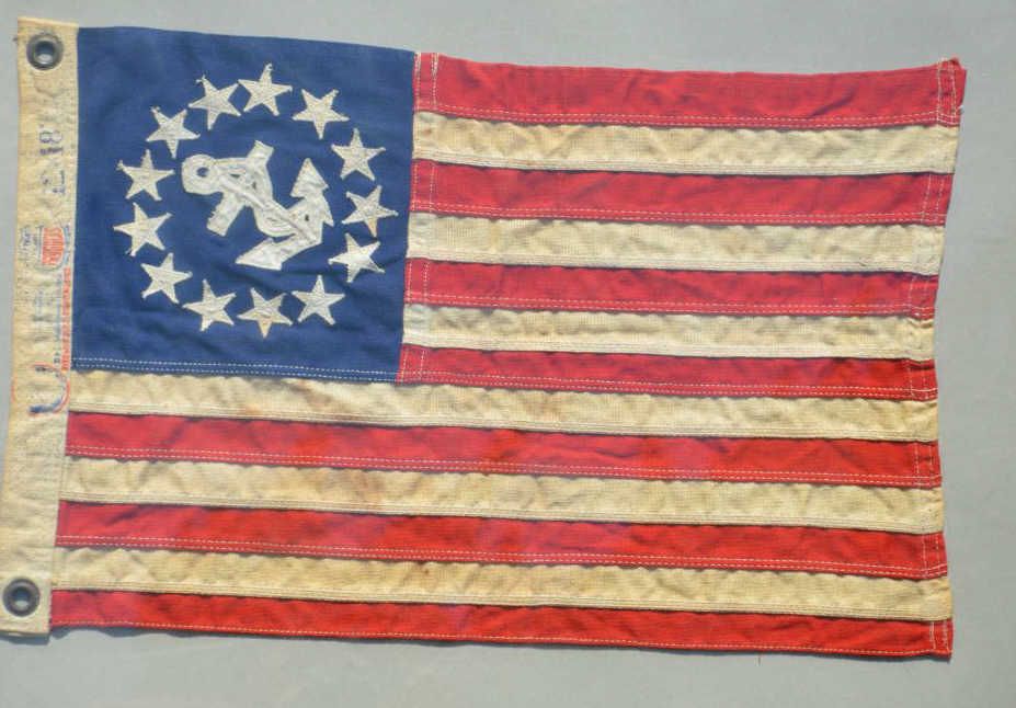 Glass framed boating flag, approx. 10-1/2” x 17”, circa 1960, in overall good used condition. Est.: $25-$50.