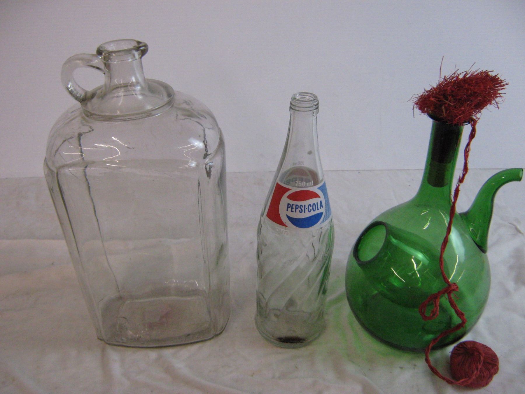 Glass jug,pepsi bottle,bird feeder,wine jug, totem pole, container