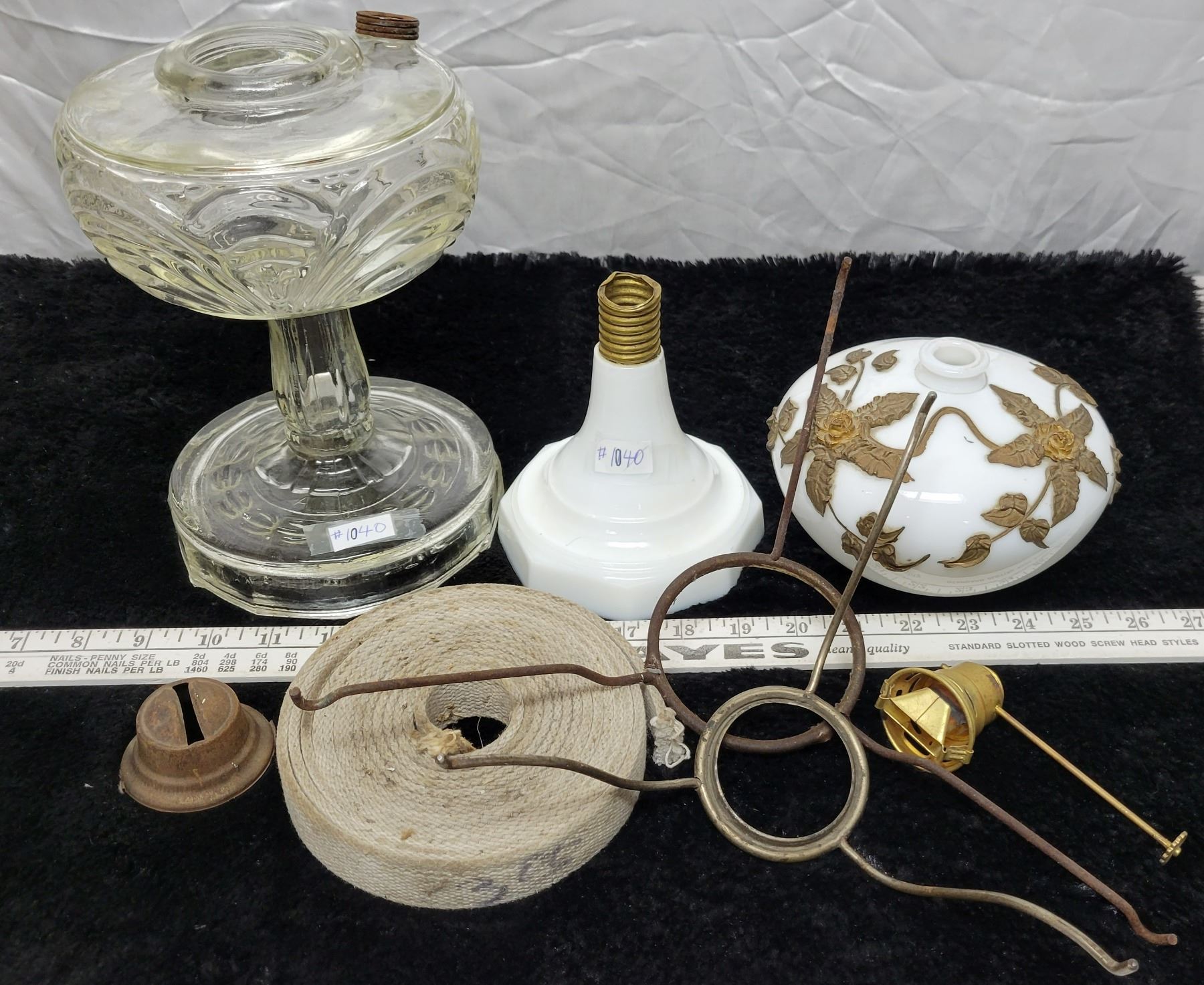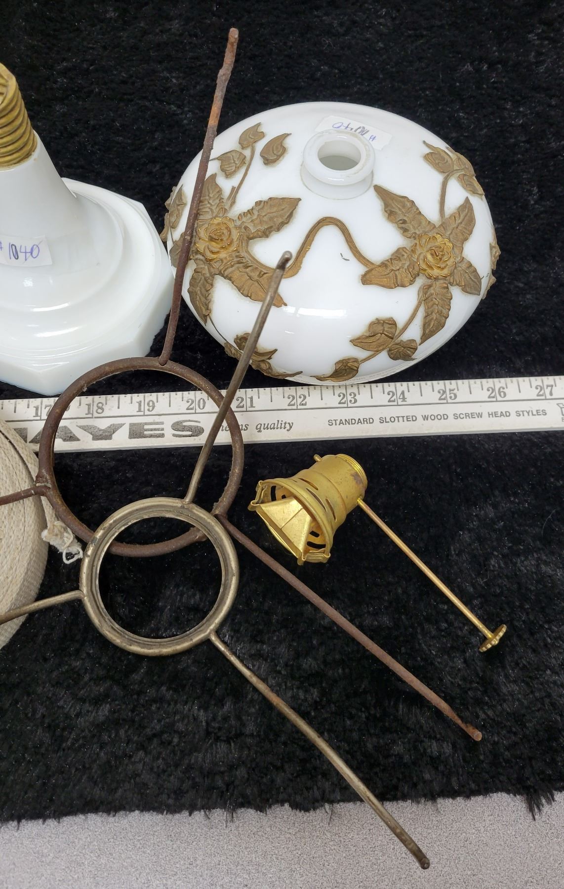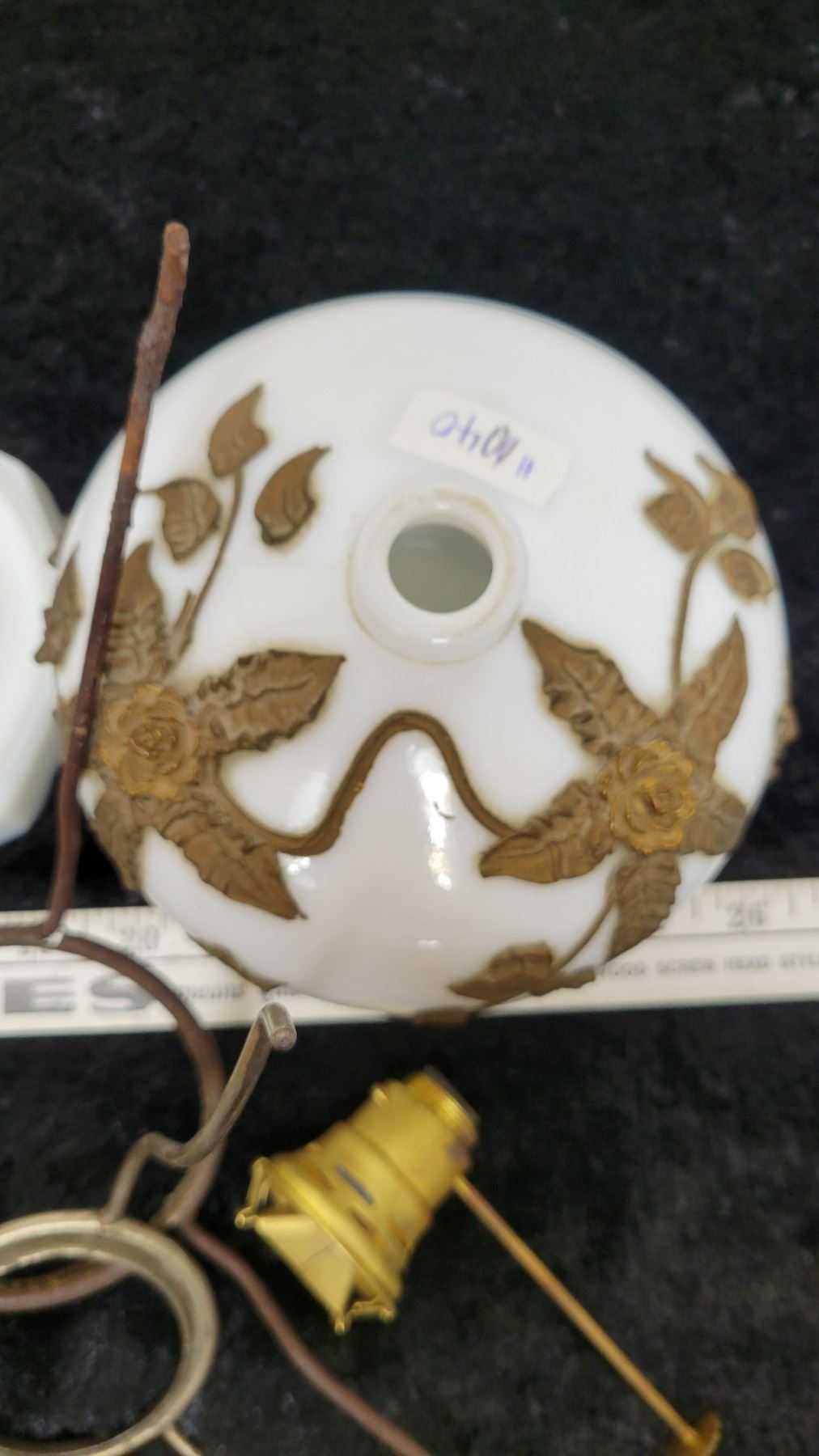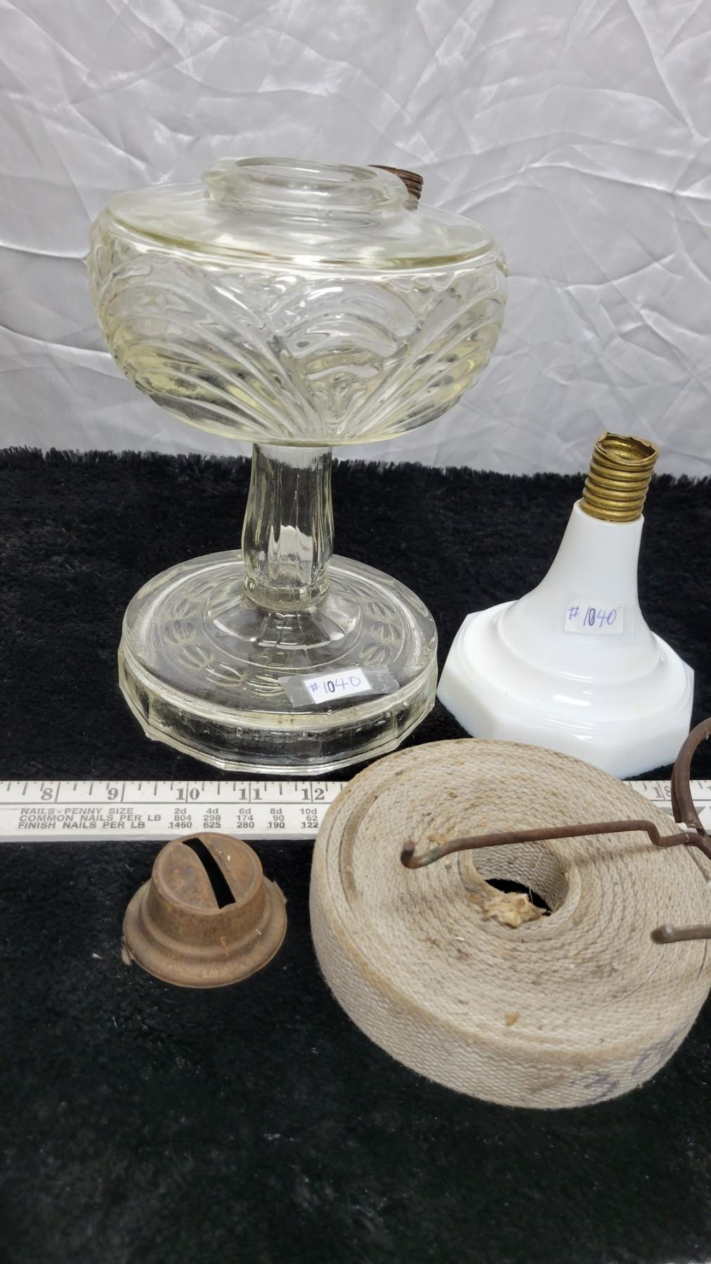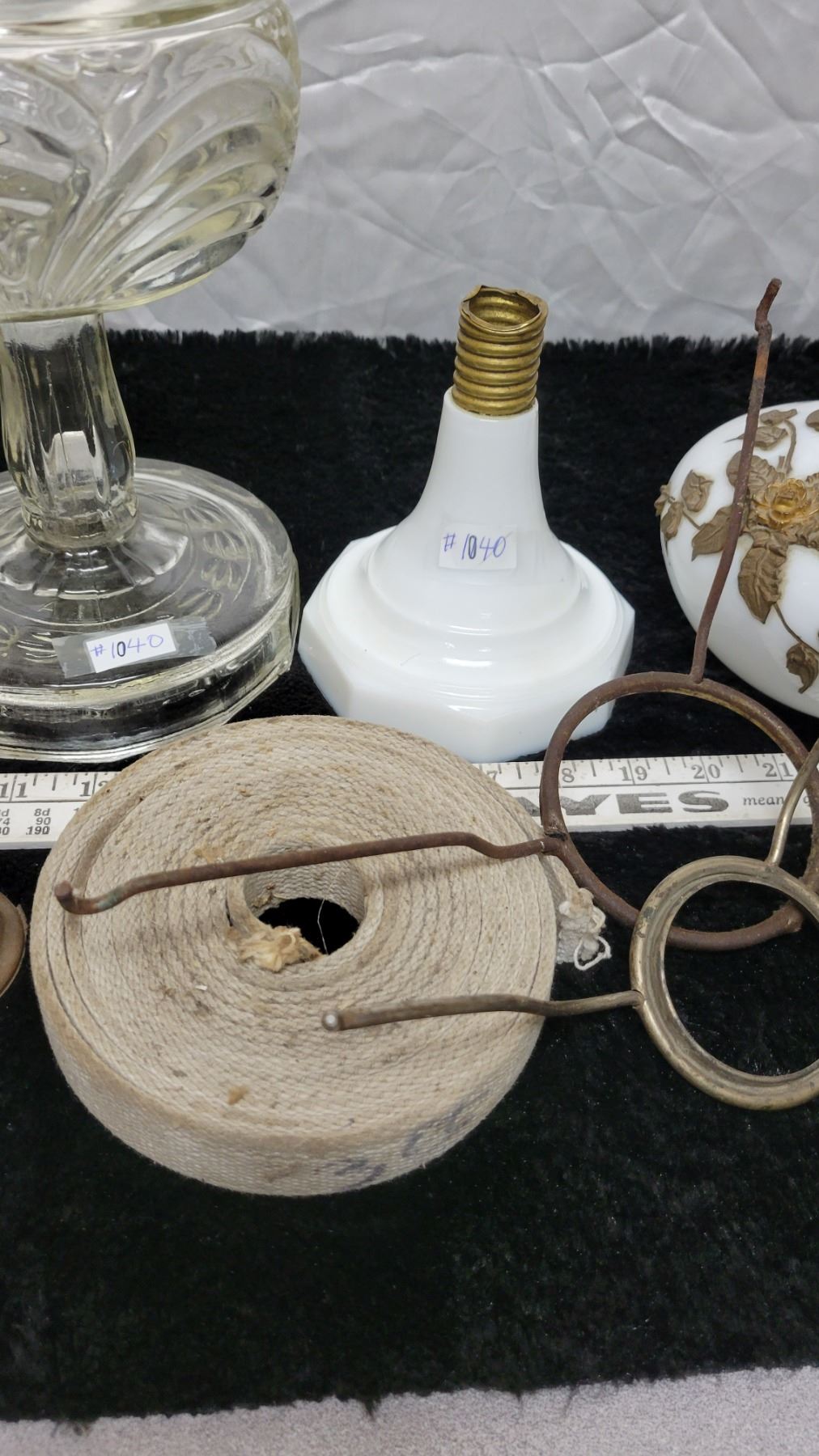 Glass lamp base, white and clear and lamp parts