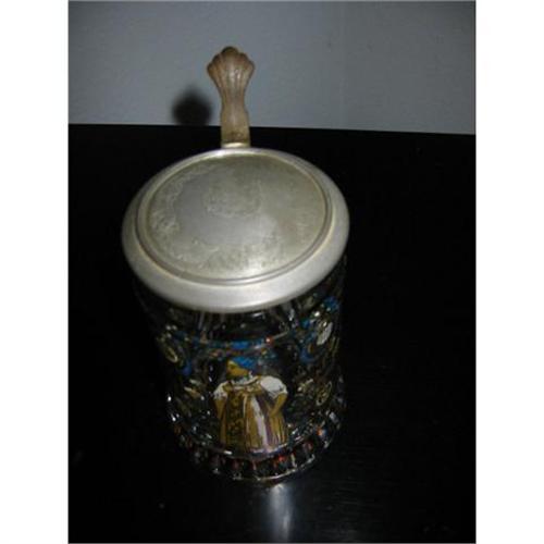 <tr><td>Title:Glass stein hand painted figural lidded mkd!</td></tr>