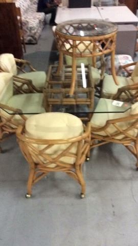 Glass table and chairs and side table