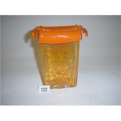 Glass: tangerine Art glass, rectangular shaped vase with turned back rim, 7" high