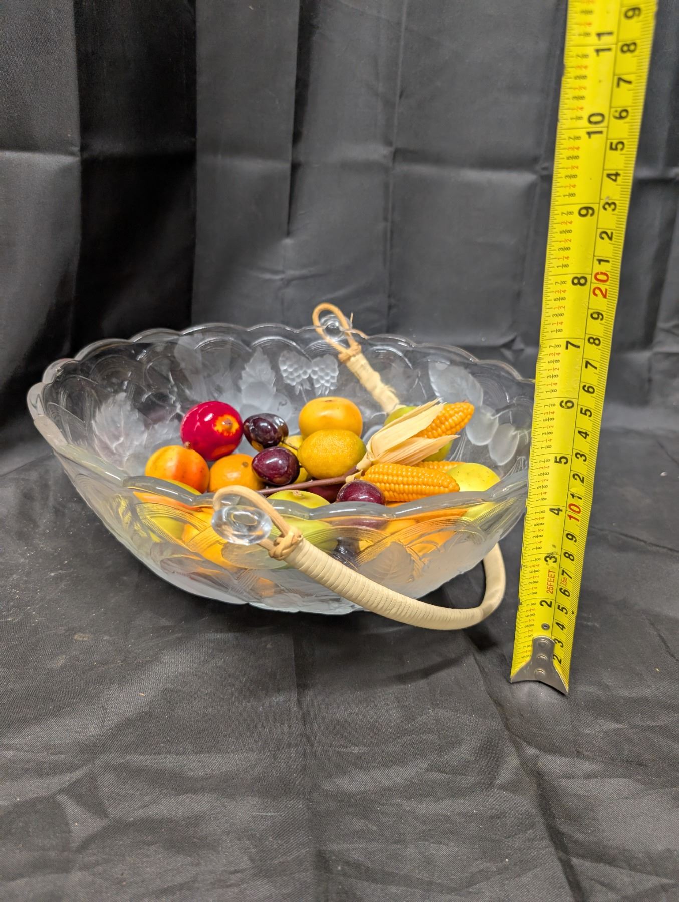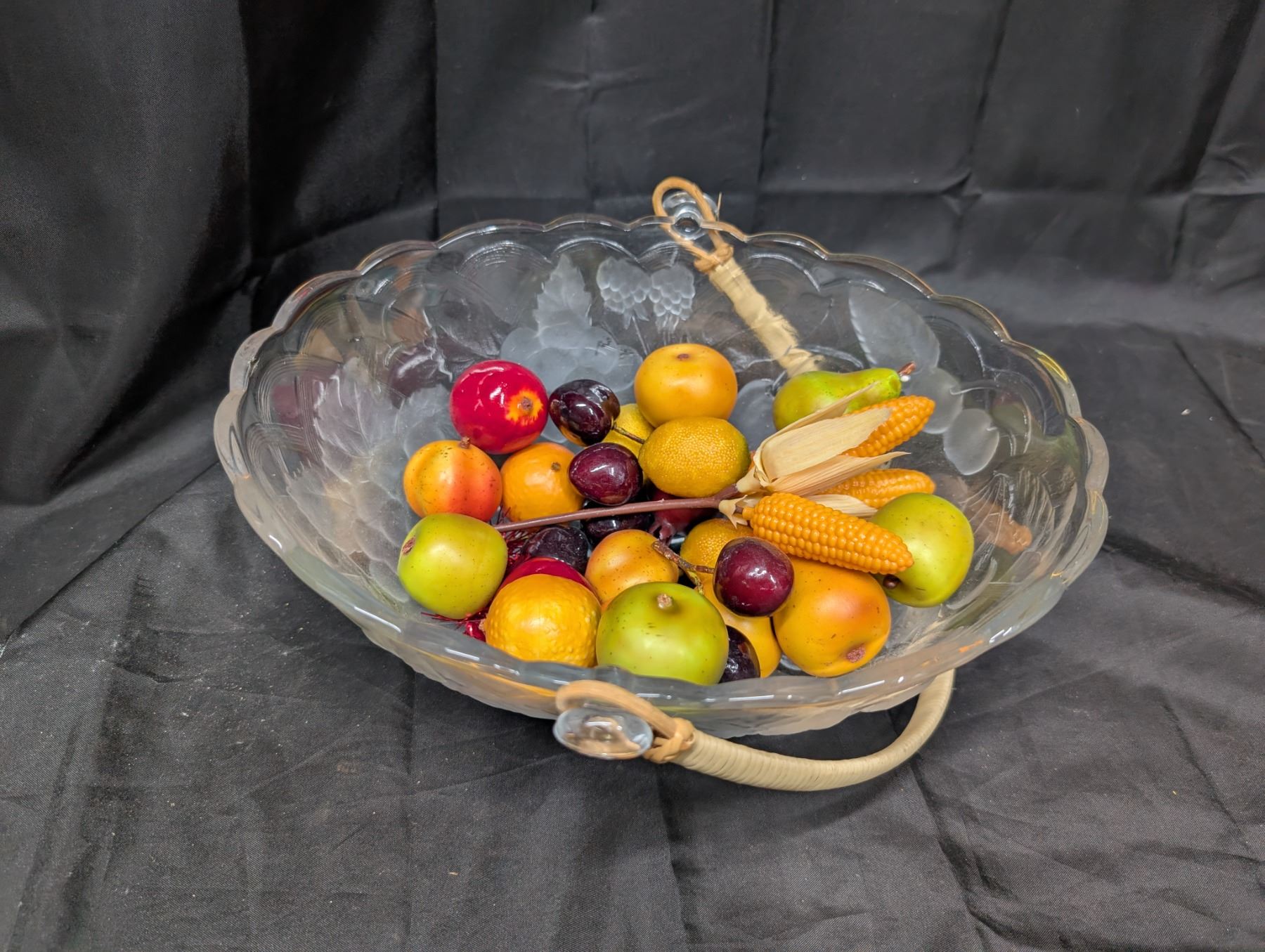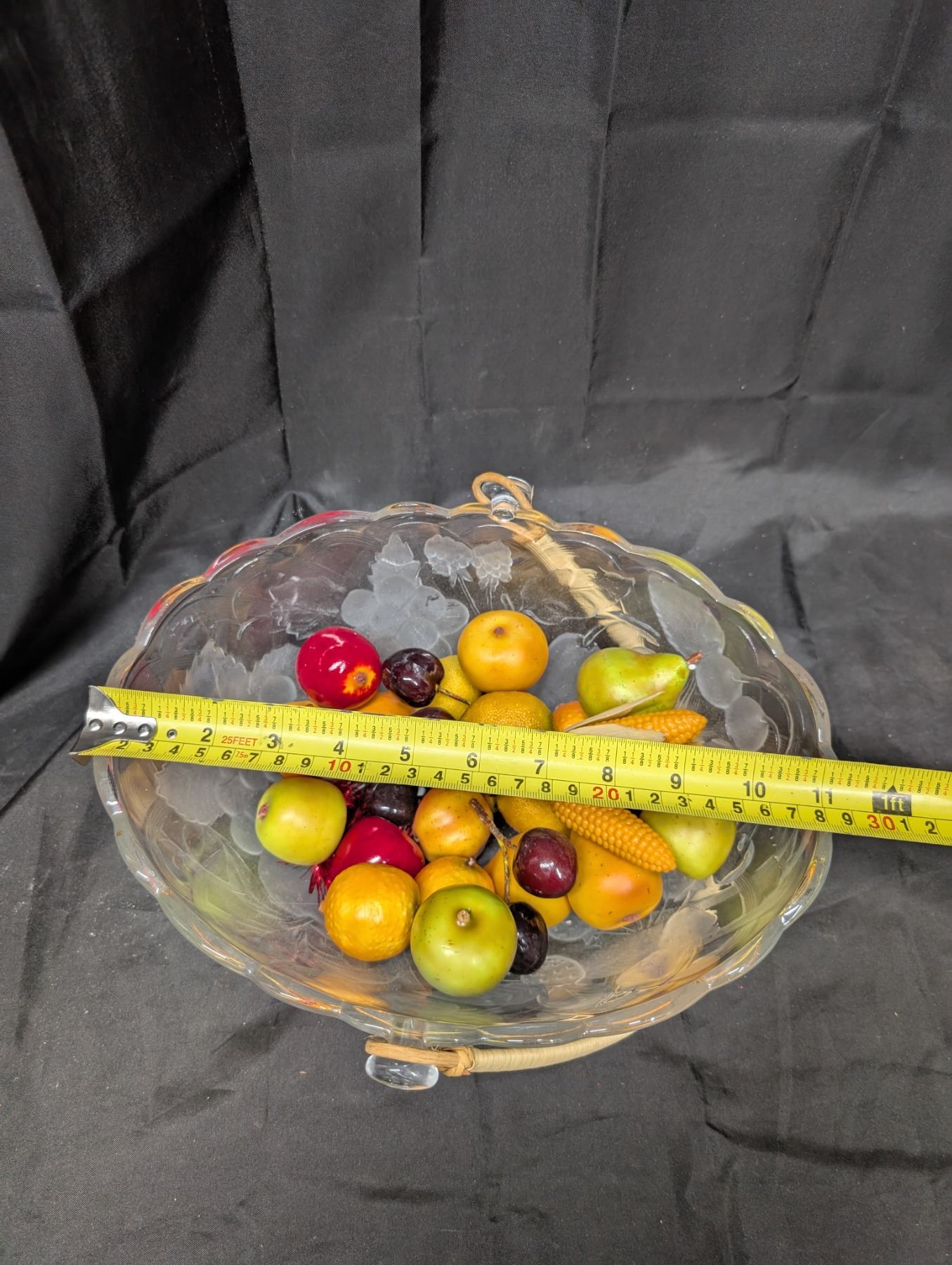 Glass w/ Handle Fruit Bowl w/ Fake Fruit Decor