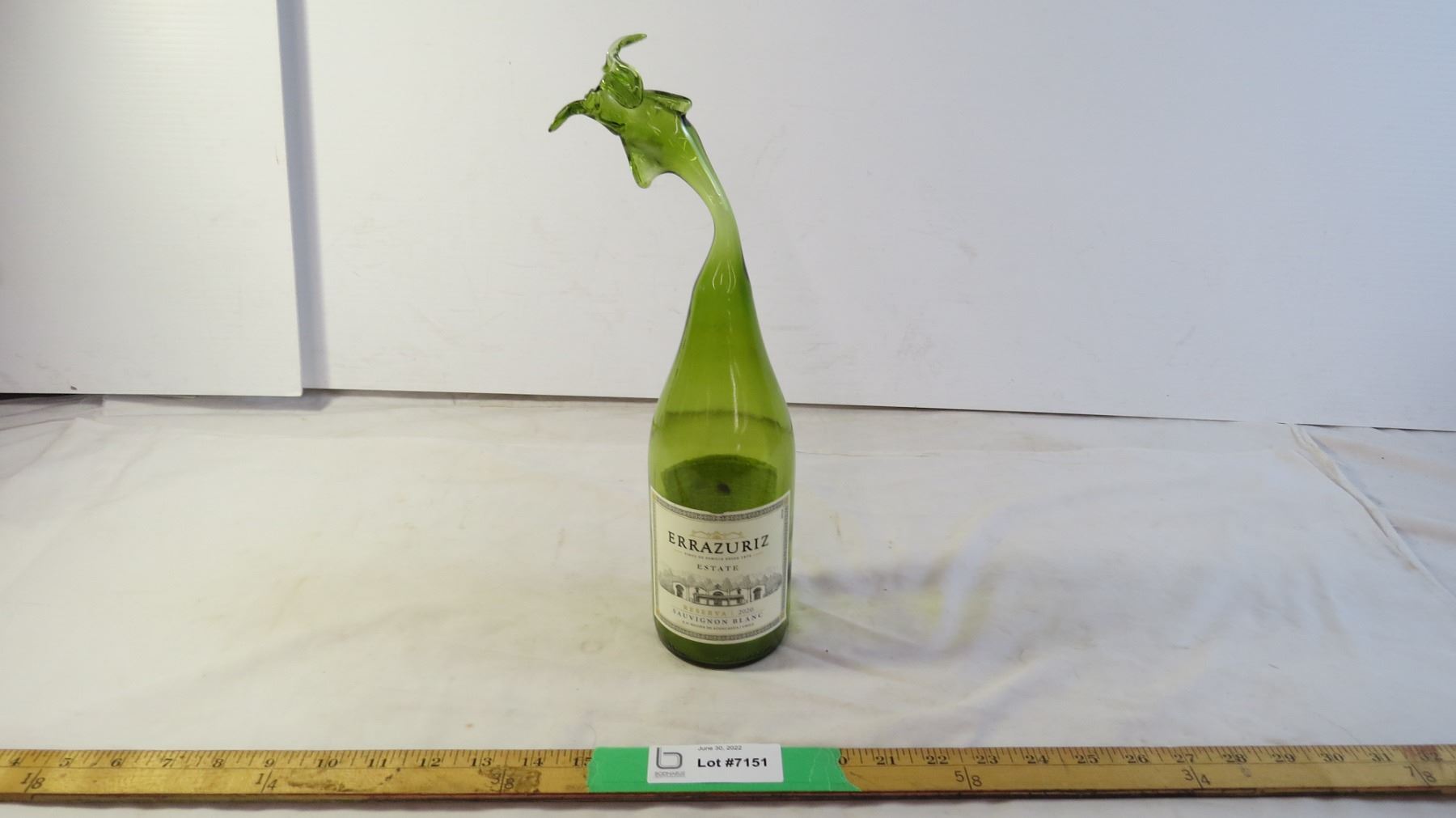 Glass wine bottle stretched into a Stranger Things demogorgon