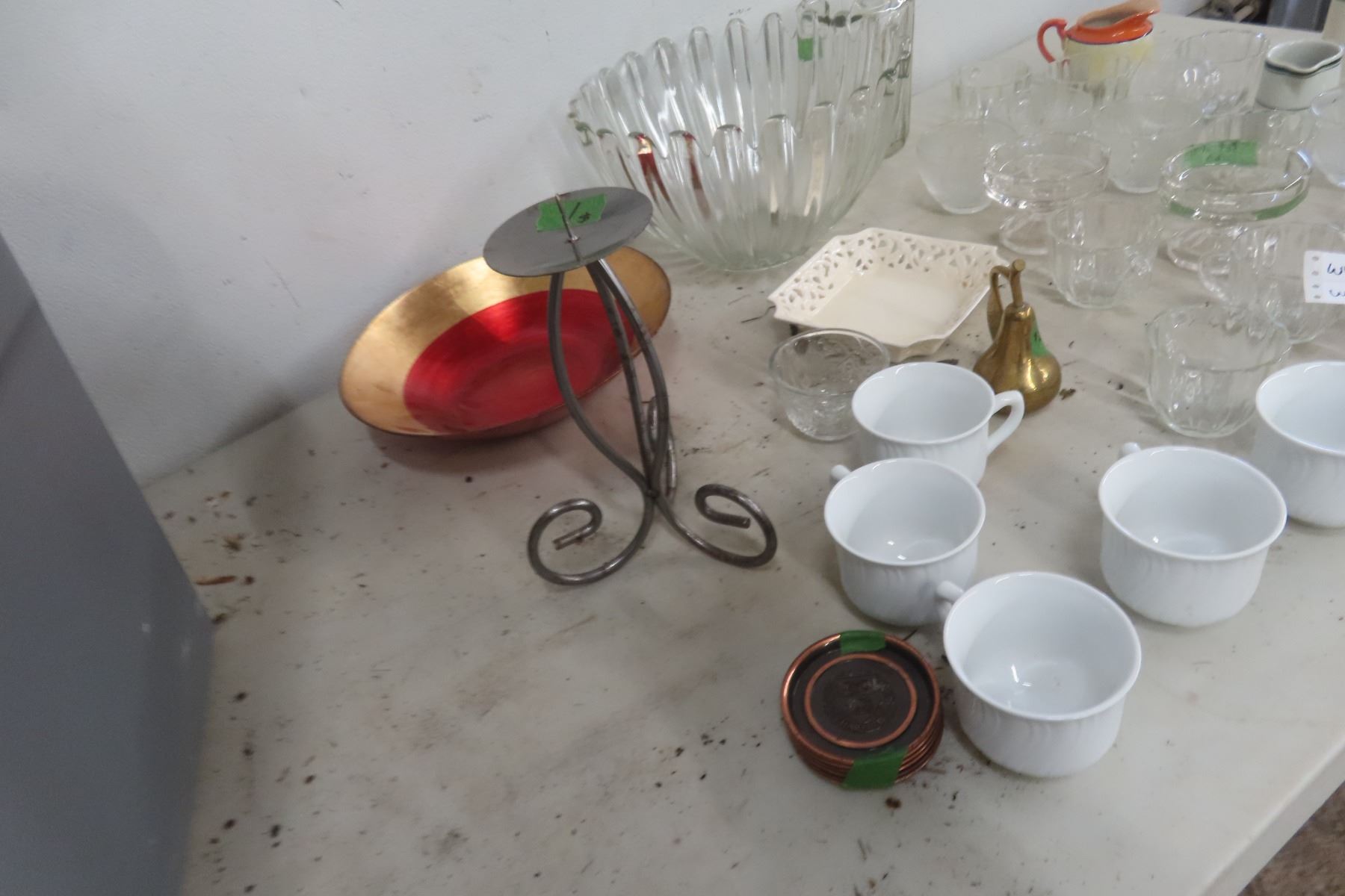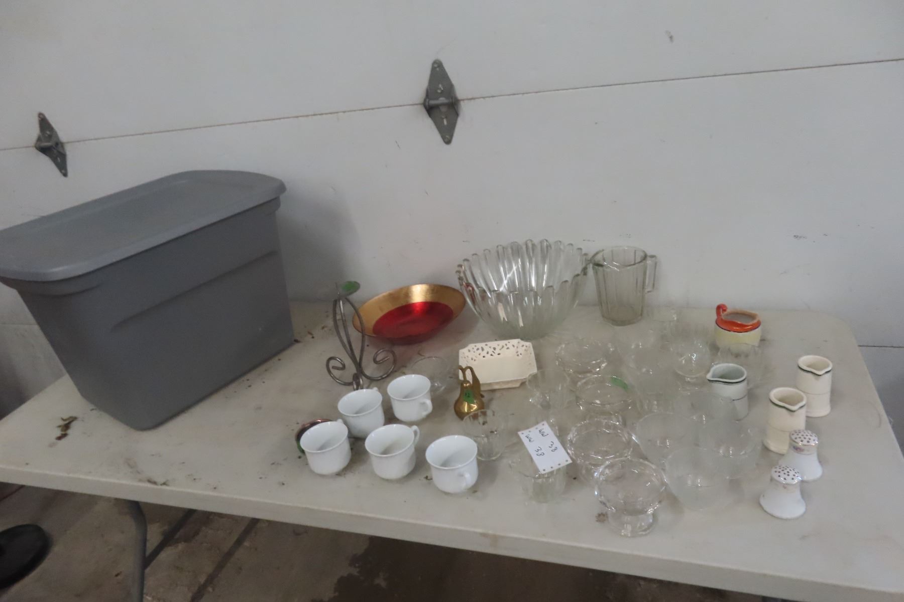 Glassware, China & a Storage Container with a Lid