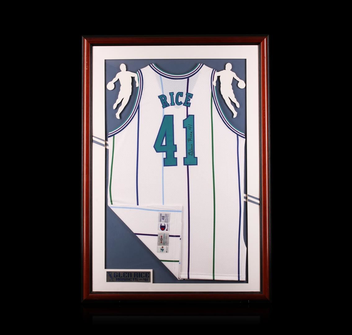 Glen Rice Framed Autographed Jersey. Comes with Certificate of Authenticity.