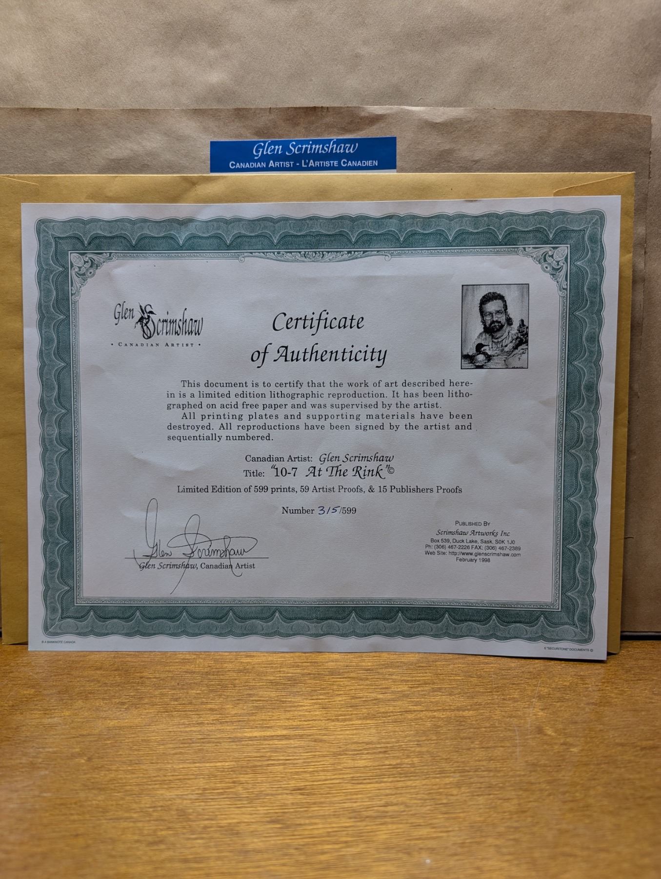 Glen Scrimshaw Limited Edition "10 - 7 At The Rink". Professionally Framed with Certificate of Authenticity