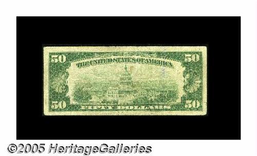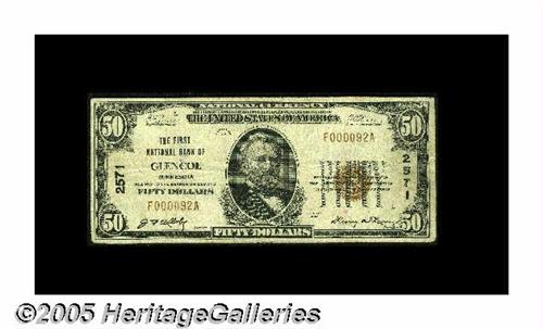 <B>Glencoe, MN</B></I> - $50 1929 Ty. 1 <B>The First NB</B></I> Ch. # 2571<BR>High denominations only in small size, with just ten examples reported in the new Kelly census. <B>Fine.</B></I>