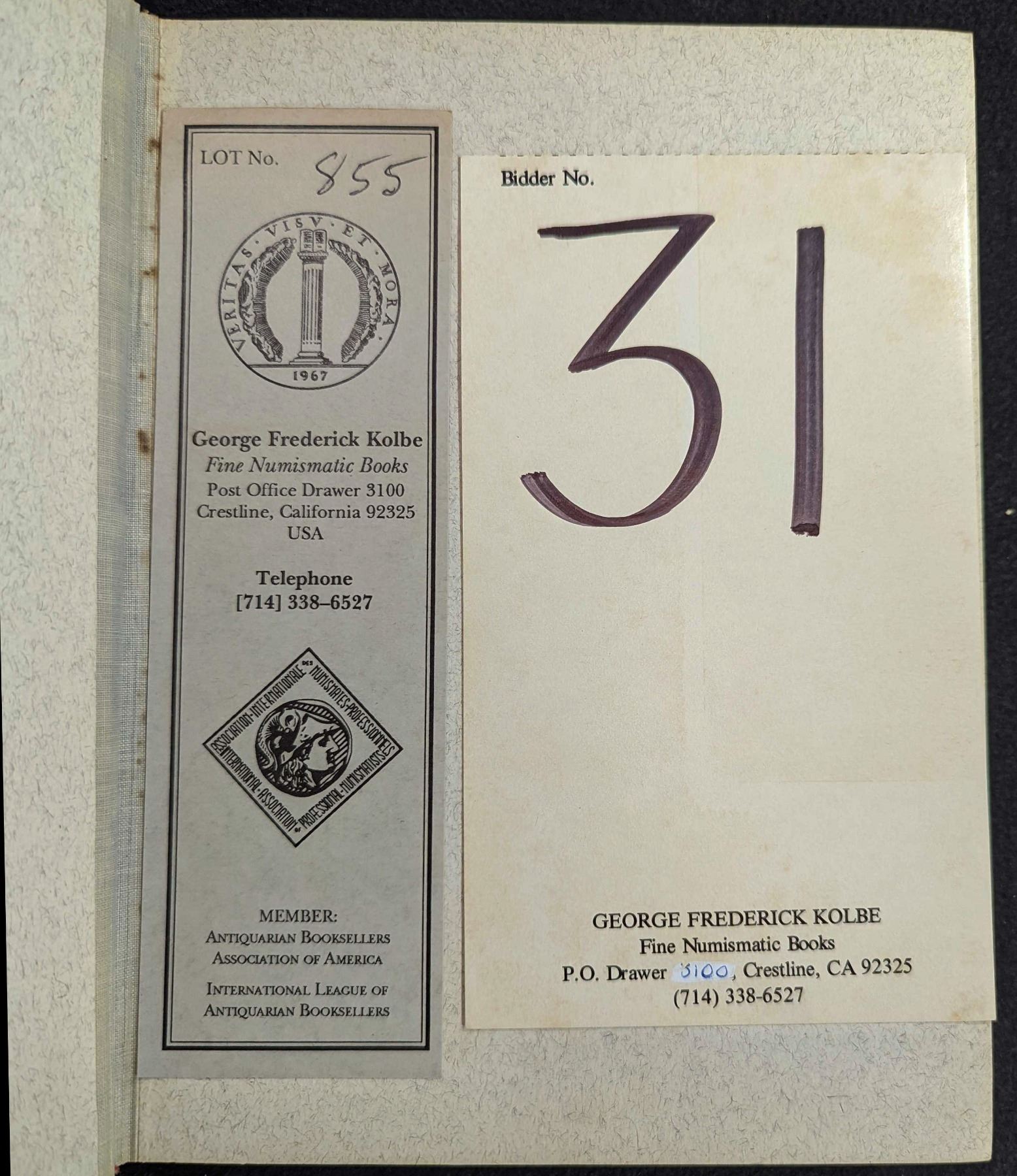 Maroon cloth, gilt. ex Kolbe sale unknown lot 855 with bidder's paddle number 31. Lot weight: 3 lbs 4oz. Subject(s): Ancient, Great Britain, World Coinage.