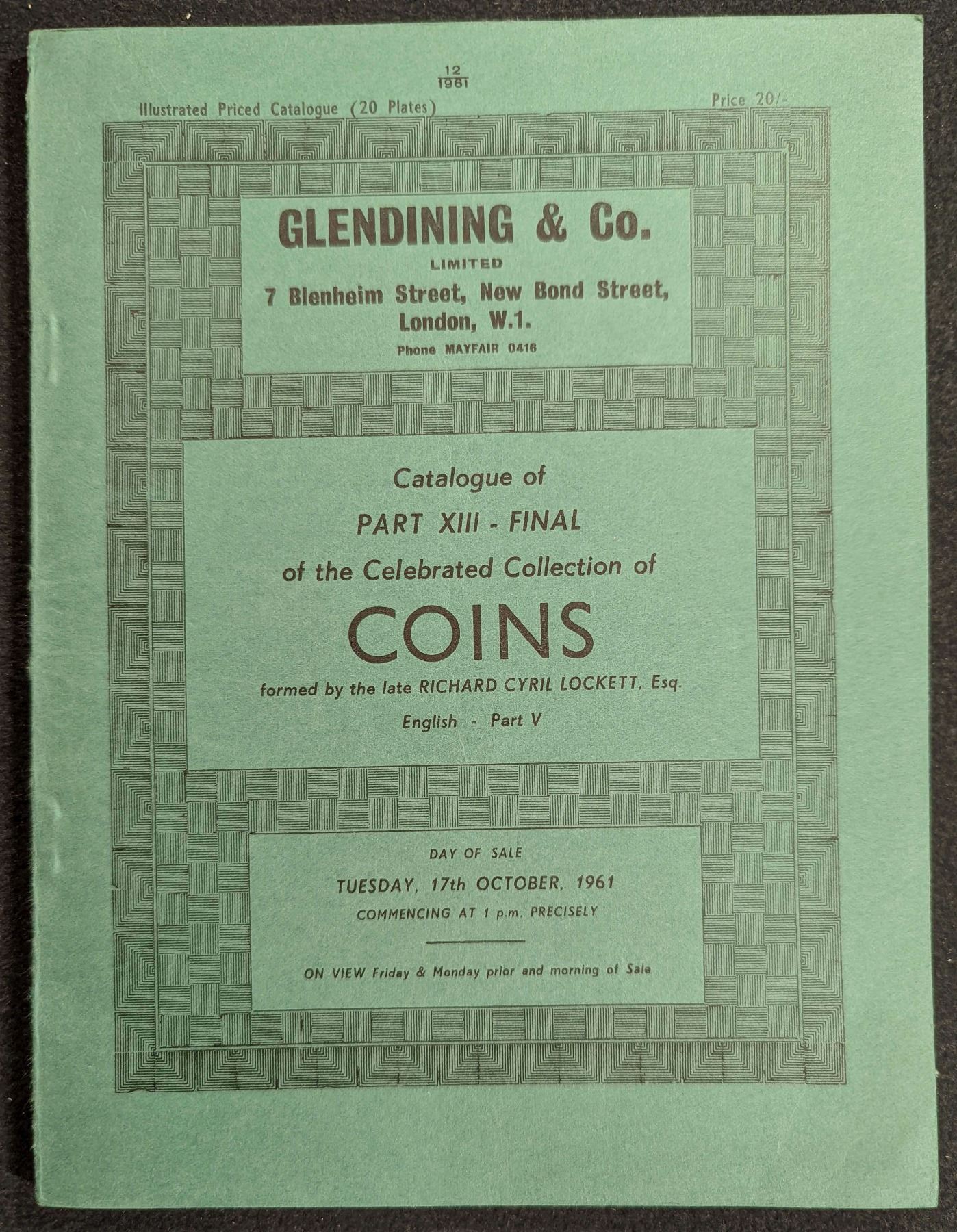 (11) Glendining & Co. Catalogue of Part XIII - Final of the Celebrated Collection of Coins Formed by the Late Cyrill Lockett, Esq. English - Part V. October 17, 1961. Illustrated Priced Catalog. 4250-4607 lots. 41 (1) pages. London. Original green printed card covers. crown 4to. 20 plates. Fine.