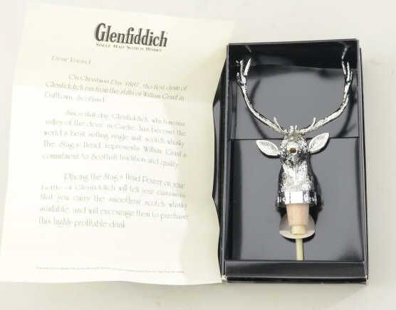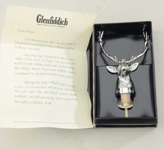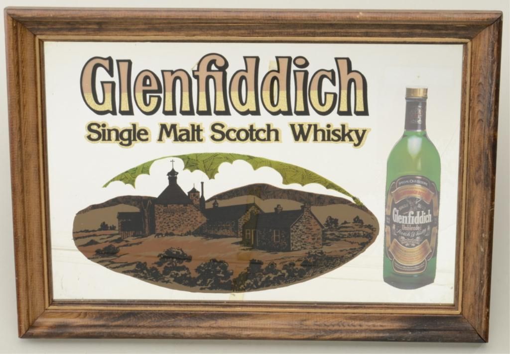 Glenfiddich Single Malt Scotch framed bar mirror approx. 14” x 20” with stag head pourer in box; a nice set for the home bar. Est.: $50-$75.