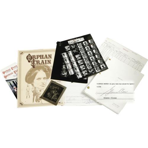 <B>Glenn Close Signed "Orphan Train" Contract Archive.</B></I> Includes an employment contract for the TV movie <I>Orphan Train,</B></I> dated May 3, 1979, and signed by Close (one of her earliest roles), as well as three movie still proof sheets, a copy of the shooting script, and a promotional brochure for the movie. Items are in overall Very Fine to Excellent condition with mild wear. In overall Very Fine to Excellent condition with mild wear.<BR><BR><b>Shipping:</b> Flat Material, Large (<a target="_blank" href="http://www.heritageauctions.com/common/shipping.php">view shipping information</a>)