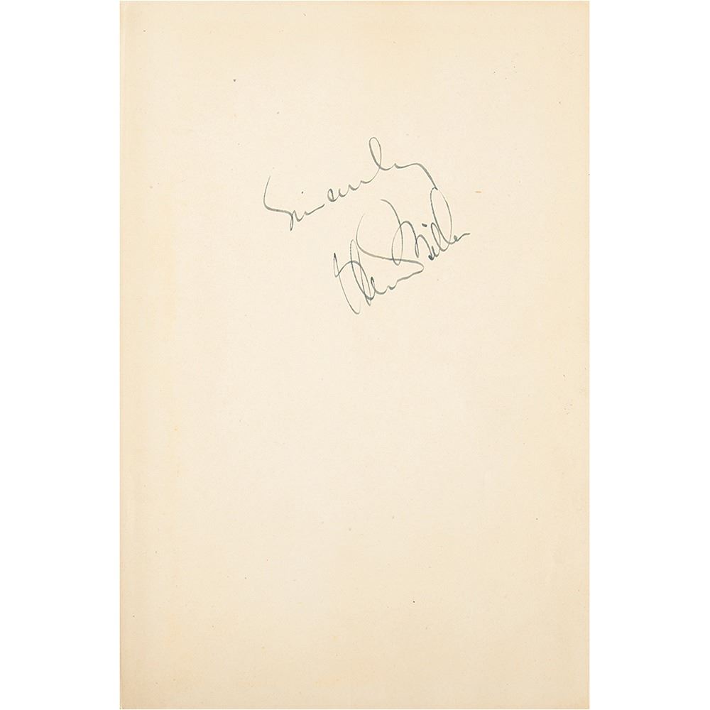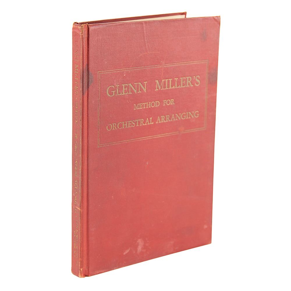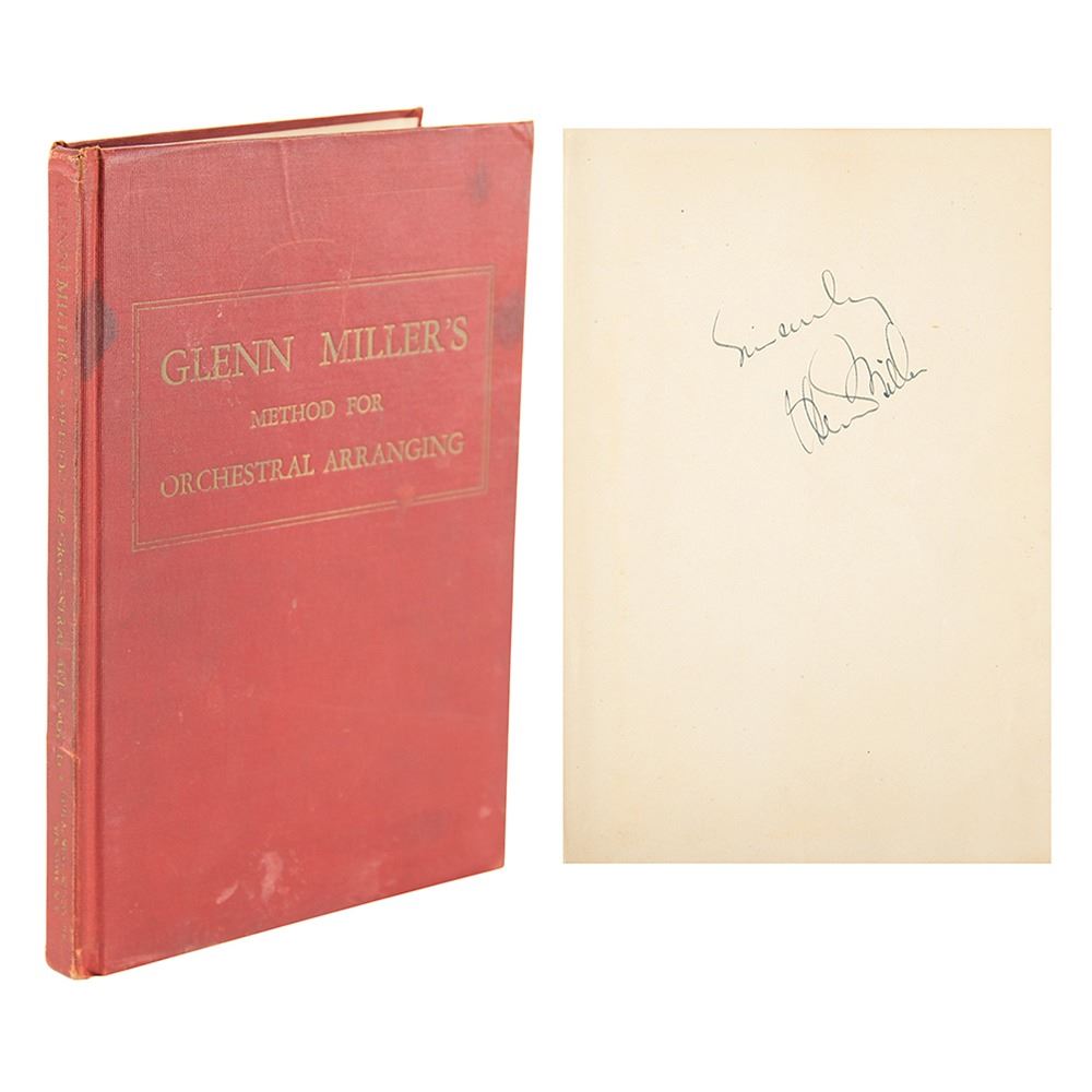 Signed book: Glenn Miller's Method for Orchestral Arranging. NY: Mutual Music Society, 1943. Hardcover, 7 x 10.25, 116 pages. Signed on the first free end page, "Sincerely, Glenn Miller." In very good condition, with staining and soiling to the covers, a loose spine, and cracked inner hinges.