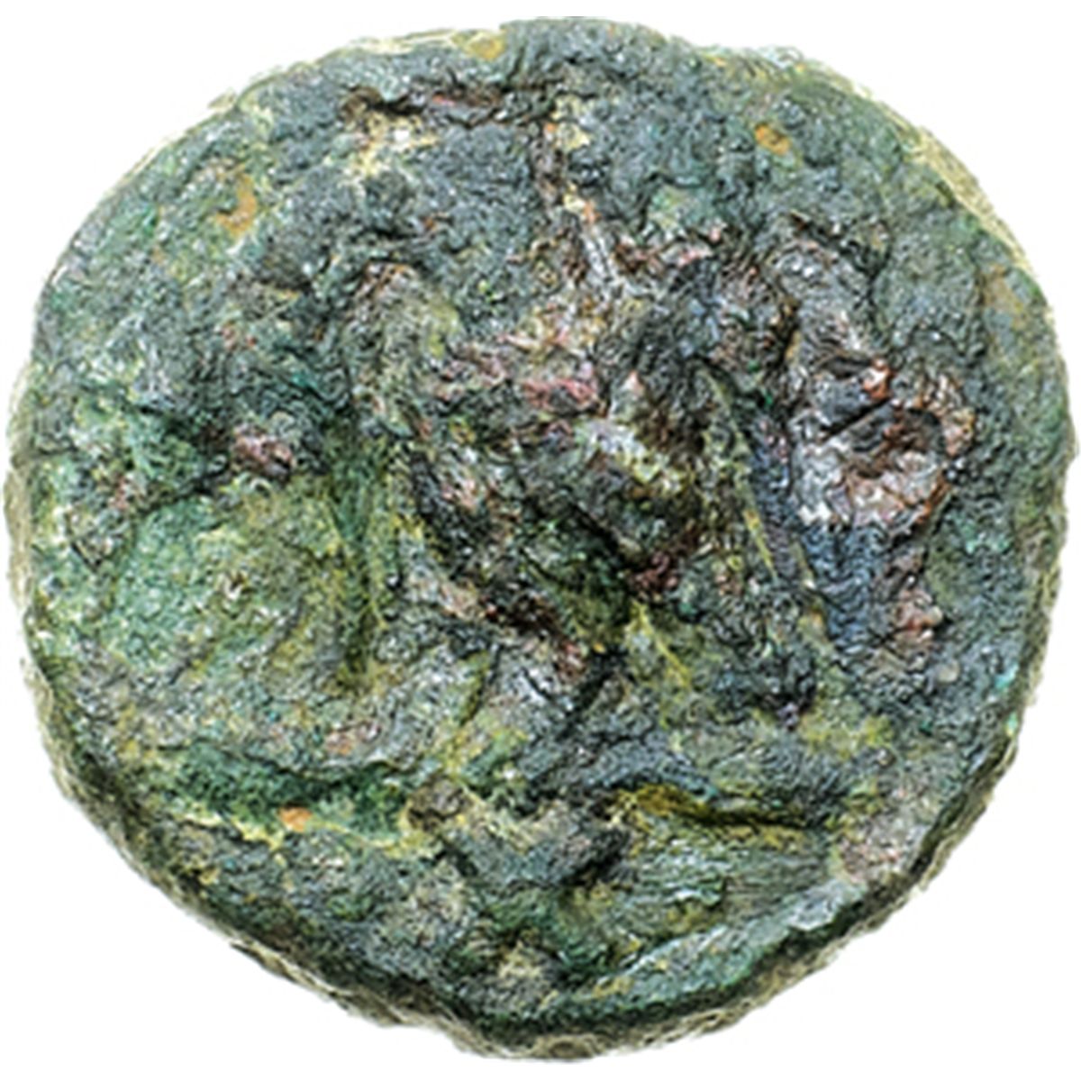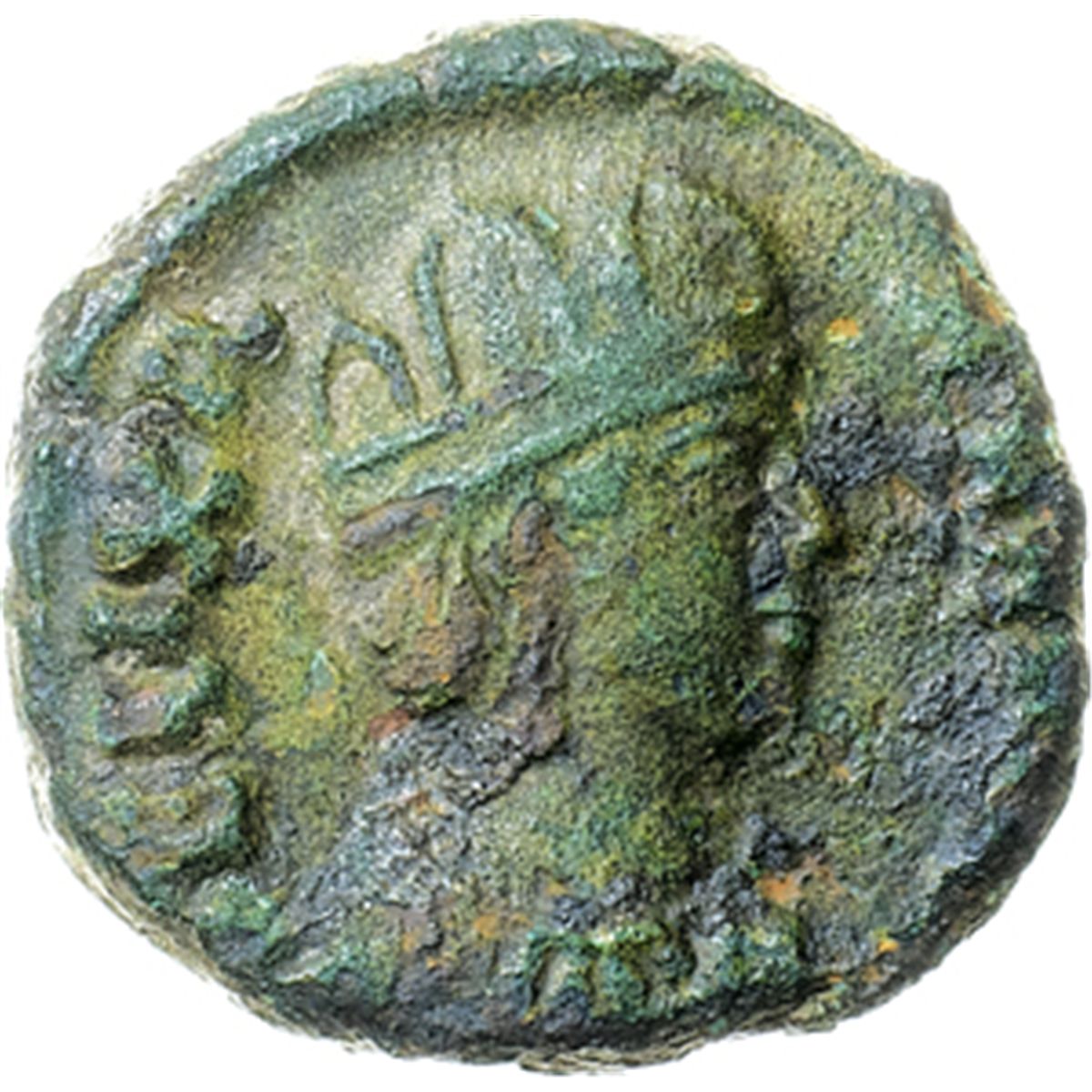 Monete Barbariche. Gli Ostrogoti in Italia. Teodorico (493-526). Decanummo, Ravenna. D/ FELIX RAVENNA. Busto turrito e drappeggiato a destra, che indossa orecchino e collana con pendente. R/ Aquila stante di fronte, tra due stelle. In esergo: X. MIB 76. Ranieri 256. AE. g. 3.43 mm. 15.50 RR. Bel BB+. Molto raro e di qualitv† eccellente per il tipo. Patina verde smeraldo.