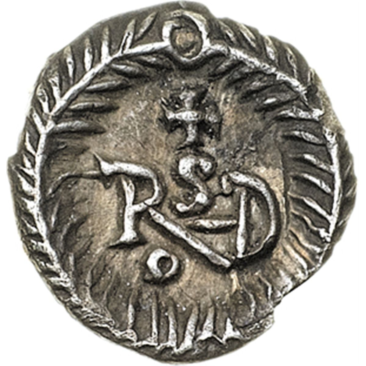 Monete Barbariche. Gli Ostrogoti in Italia. Teodorico (493-526). Quarto di siliqua in nome di Anastasio, Ravenna (493-518). D/ DN ANASTASWS AVG. Busto di Anastasio diademato, corazzato e paludato a destra. R/ Monogramma di Teodorico. Sopra, croce. Tutto entro corona d'alloro. Metlich 45c. Ranieri 249. AG. g. 0.63 mm. 11.50 RR. qSPL/SPL.