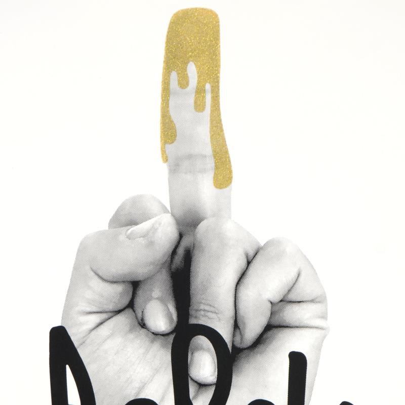 "Glitter Finger" is a limited edition silkscreen on archival paper numbered hand signed by the artist. Includes Letter of Authenticity. Measures approx. Measures approx. 16" x 20" (image).
