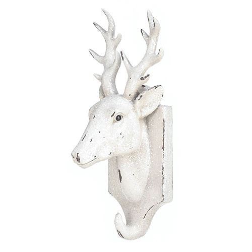 Glitz Reindeer Hook **|**|** Sparkly, shiny and festive! This functional wall-mounted hook features a reindeer bust thats a stylish way to welcome the holidays to your home. Use it for stockings and beyond!Description Details Item weight: 1 lb.Product Dimensions: 4-7/8 x 4" x 9-1/2" high.Product Material: Polyresin.UPC Code: 849179023614.Packaging: 1 EA"