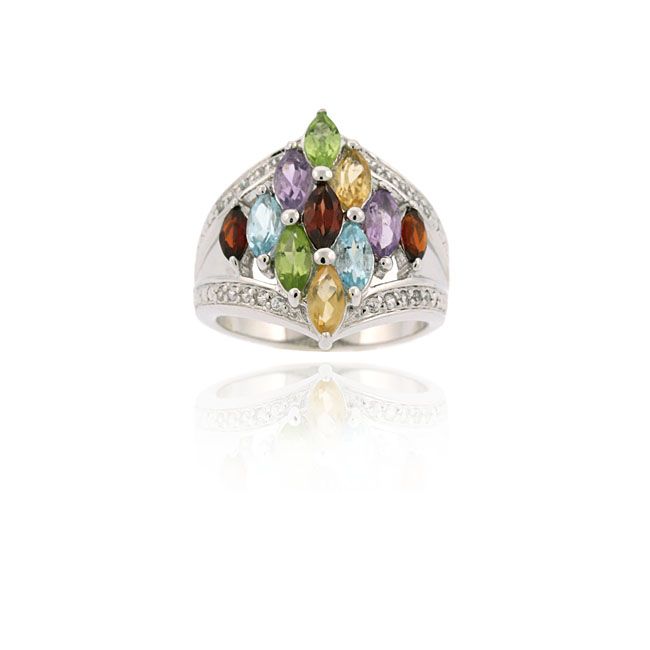 Glitzy Rocks Sterling Silver Multi-gemstone and Cubic Zirconia Ring Item#: 11290108