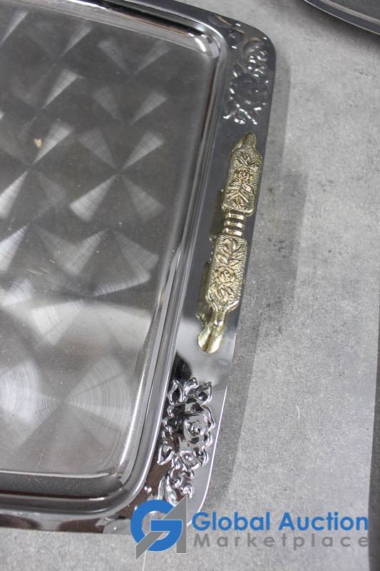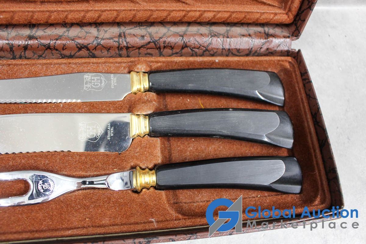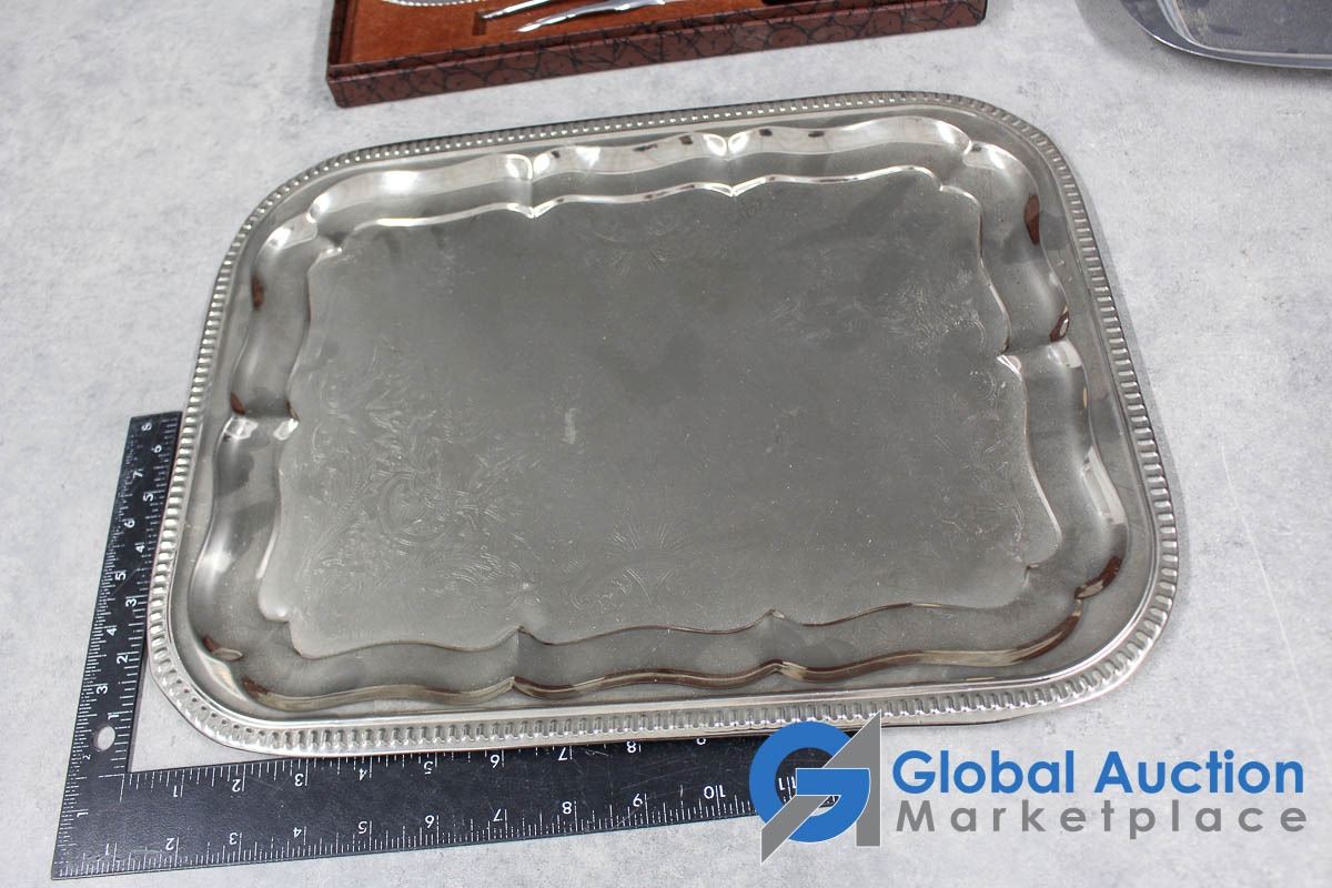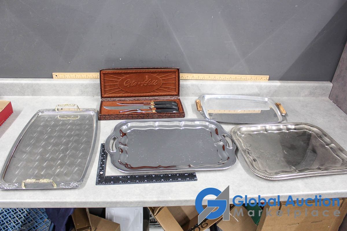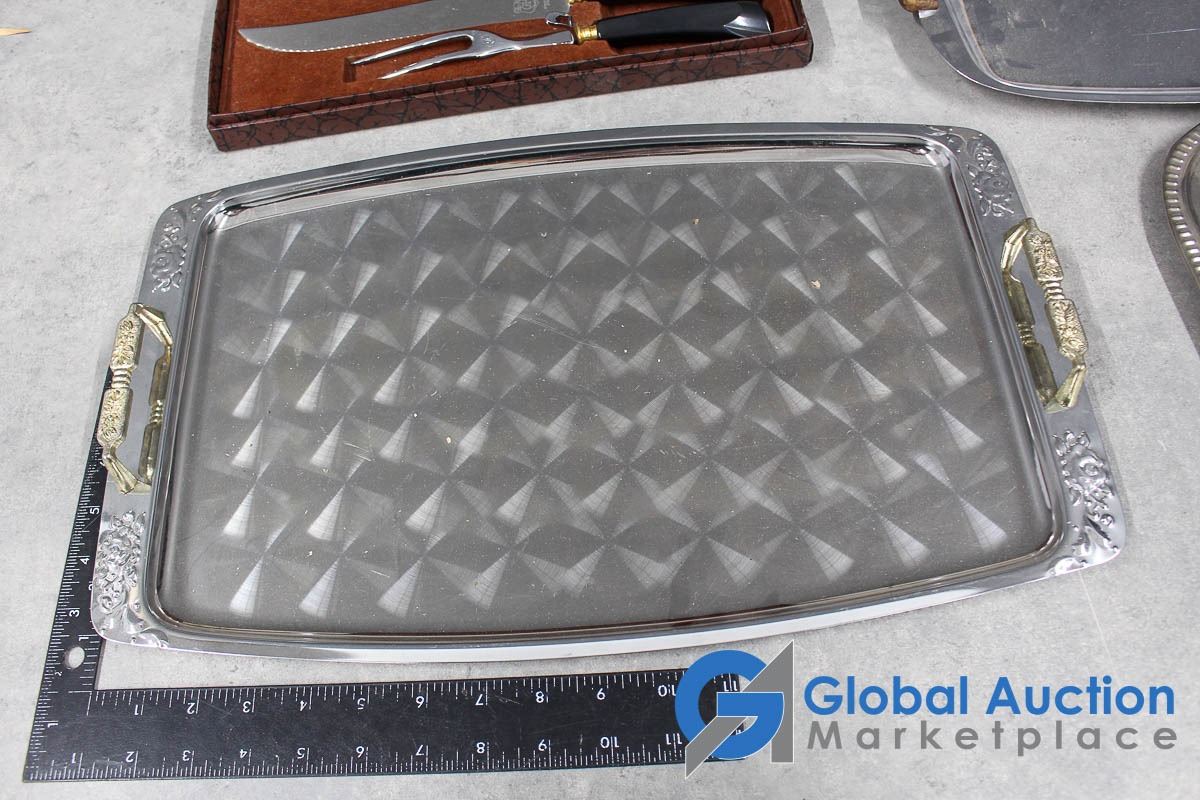 Glo-Hill Stainless Carving Set w/Box & (4) Chrome Serving Trays