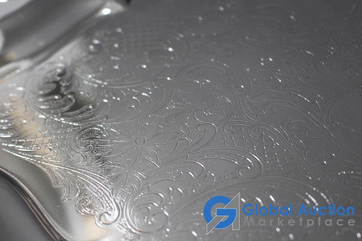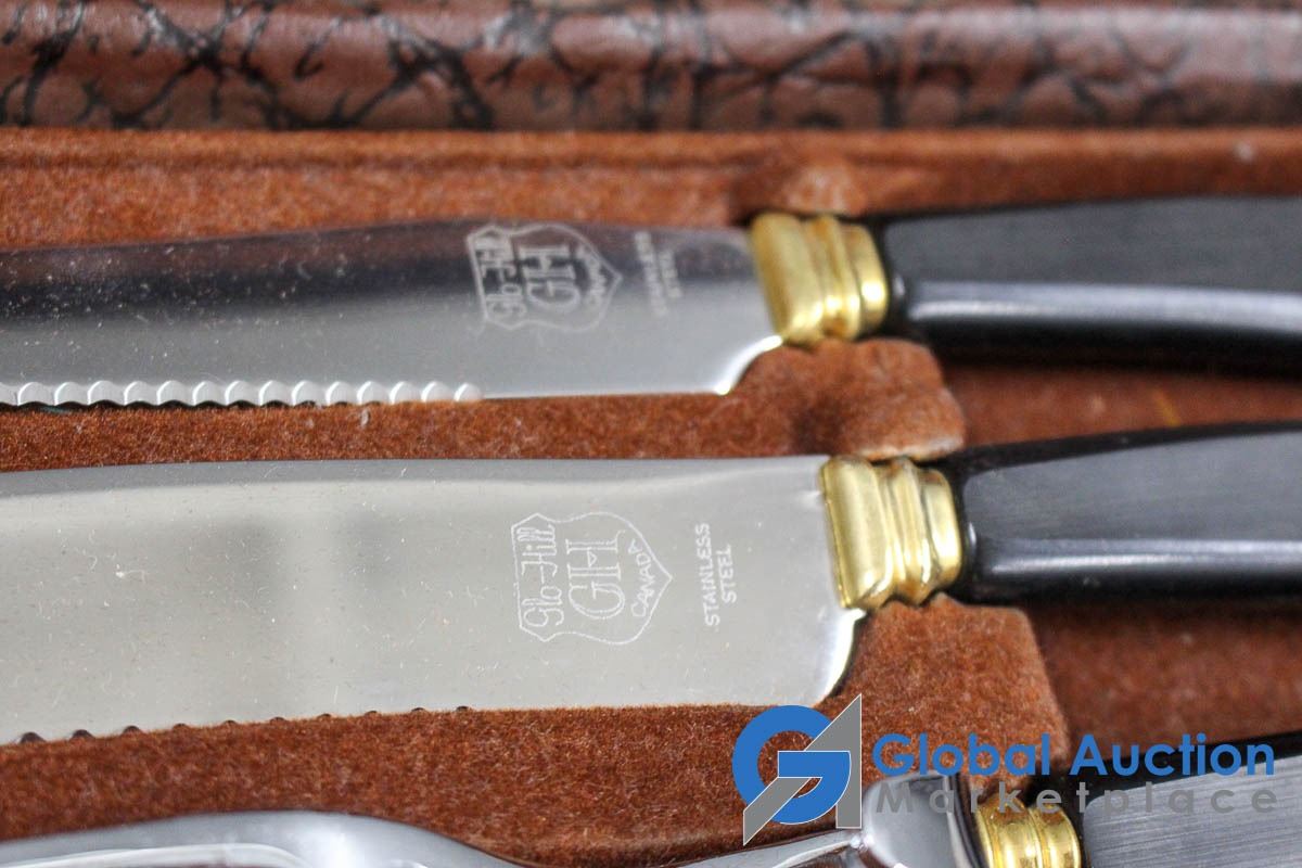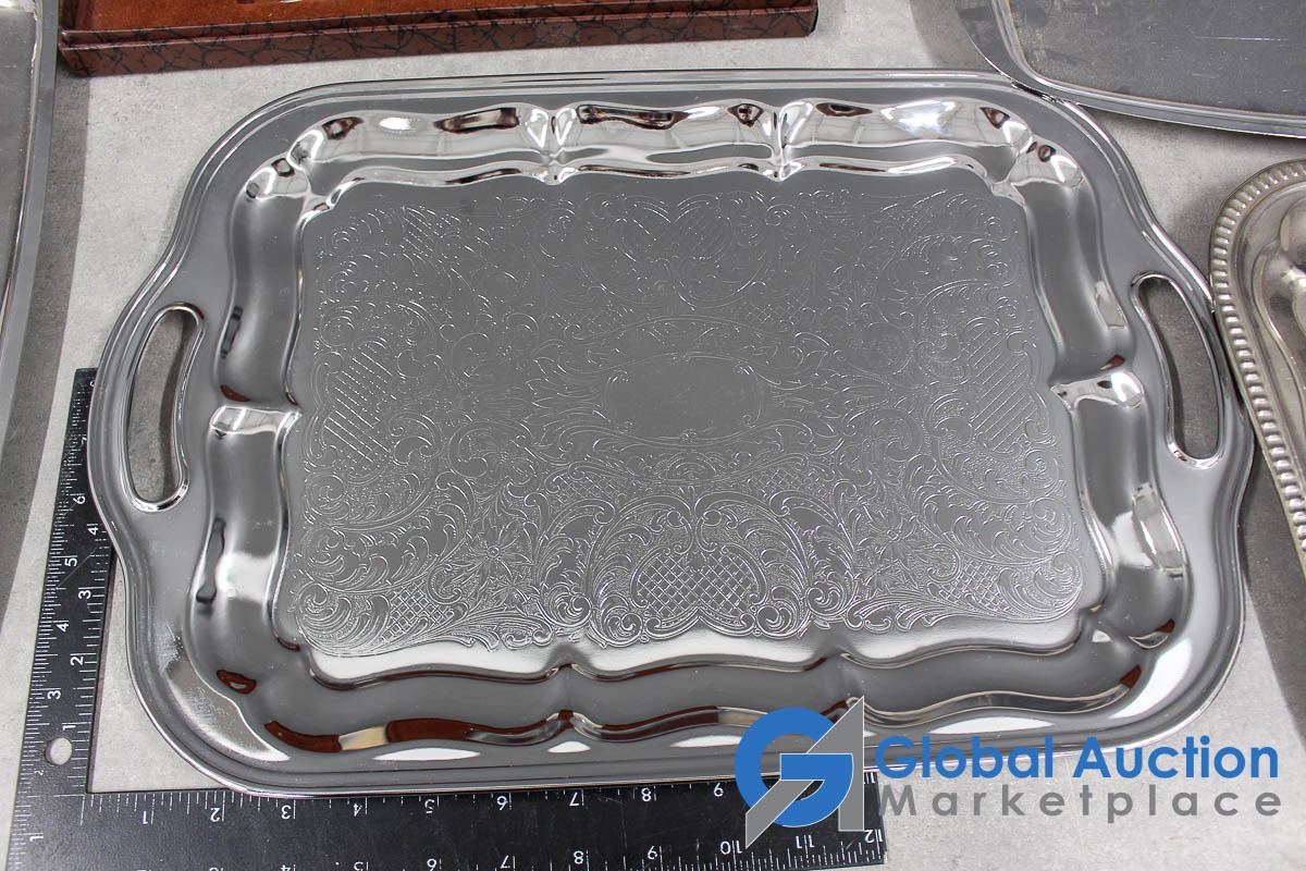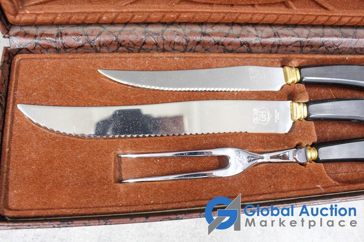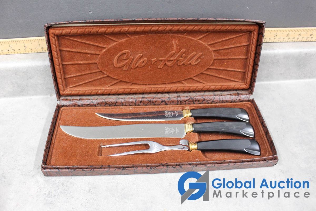 Glo-Hill Stainless Carving Set w/Box & (4) Chrome Serving Trays
